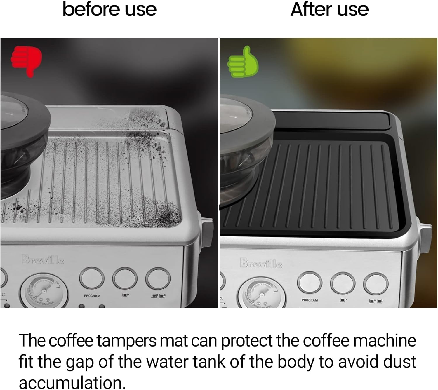 - 【Prevents Scratching】 The anti-slip design make the espresso tamp mat cling to the breville barista bean hopper and will not slide easily. Prevents objects on top from scratching the coffee maker and expands the life of the breville barista express machine.