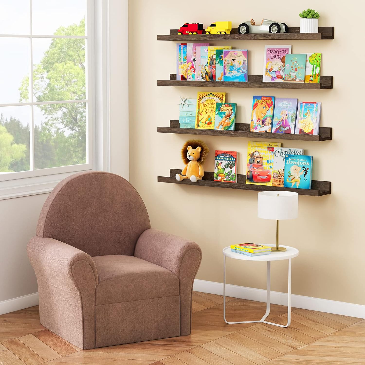 - 【Multiple combinations, More creativity】 You can connect two or more ledge shelves together to hang them in a line all as a EXTRA LONG SHELF to hold picture frames, art decor, collectibles in your room wall. They can also be hanged as vertical model as shelving unit rack and hold photo frames, family pictures, indoor plants, canvas, Knick knacks, pop figurines, mugs collectibles and vinyl records form your gallery wall in your living room, bedroom, family room or hallway.