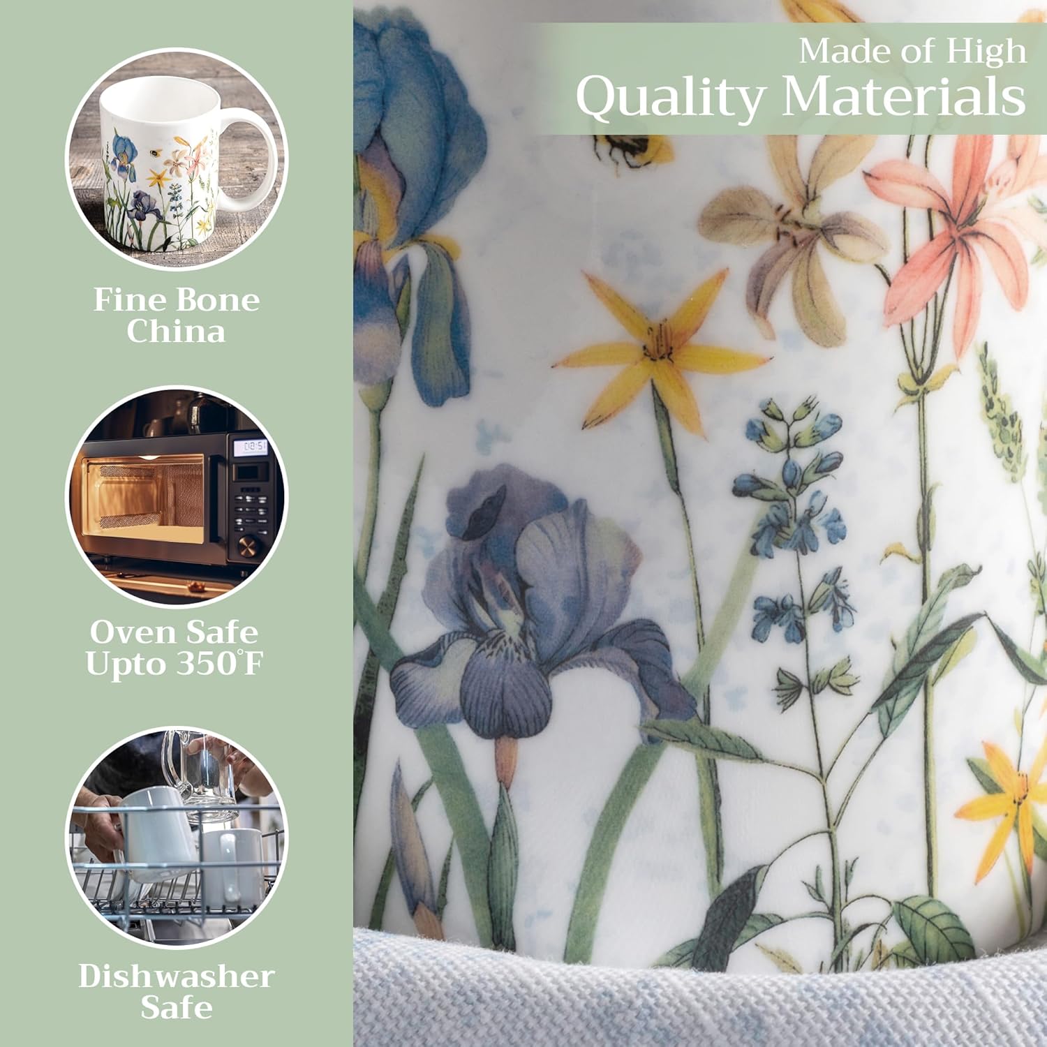 Maison d' Hermine Coffee Mug with Handles Fine Bone China Mugs Pack of One Tea Cups for Hot Beverages Cappuccino Latte Home Restaurant Office Perfect for Gift (Fleurs De Mai - Floral, 15 Ounce)