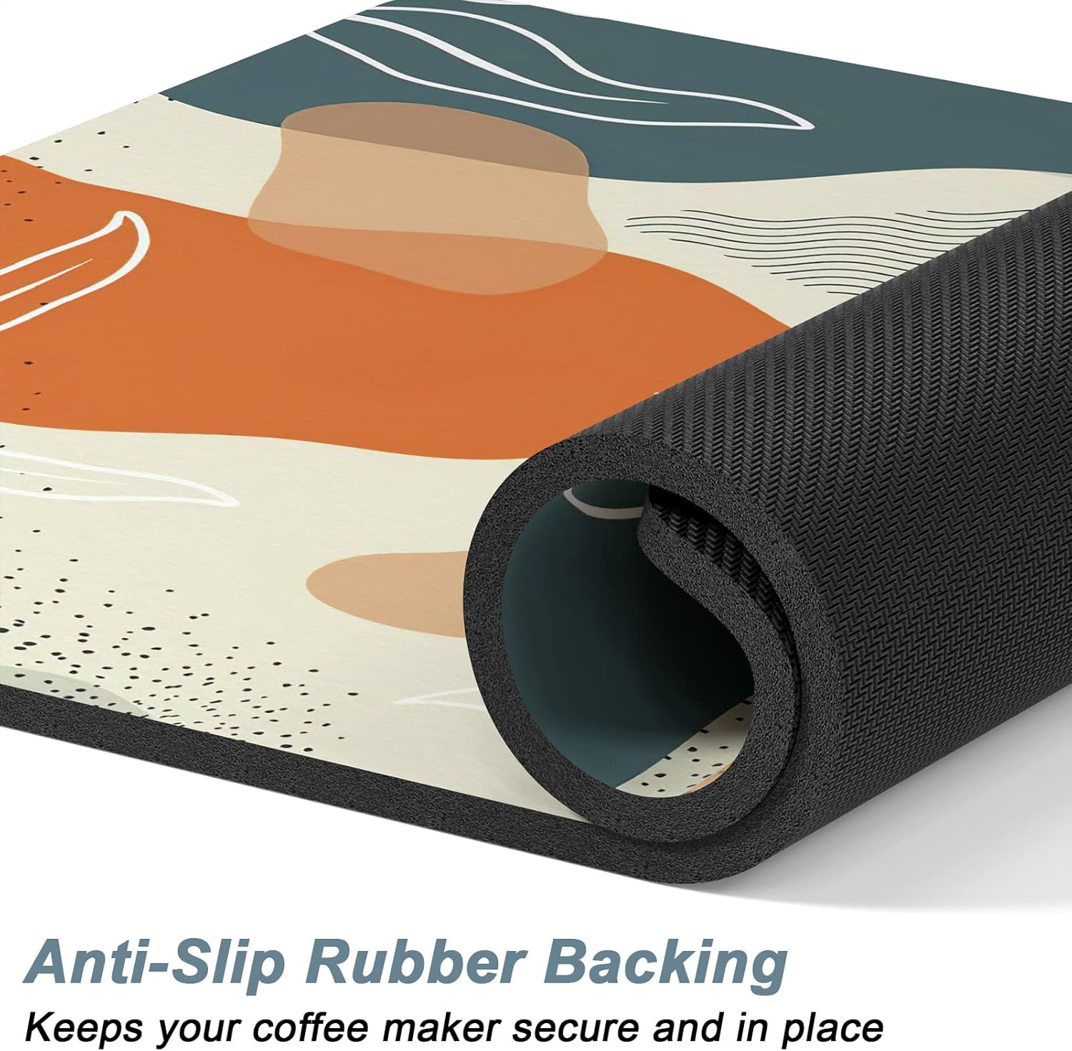 - Super Absorbent and Non-slip: Coffee bar decor mat is crafted from absorbent suede and anti-slip rubber. The surface is soft, heat-proofand and can quickly absorb liquid. The anti-slip rubber backing can firmly grip the floor without unwanted sliding