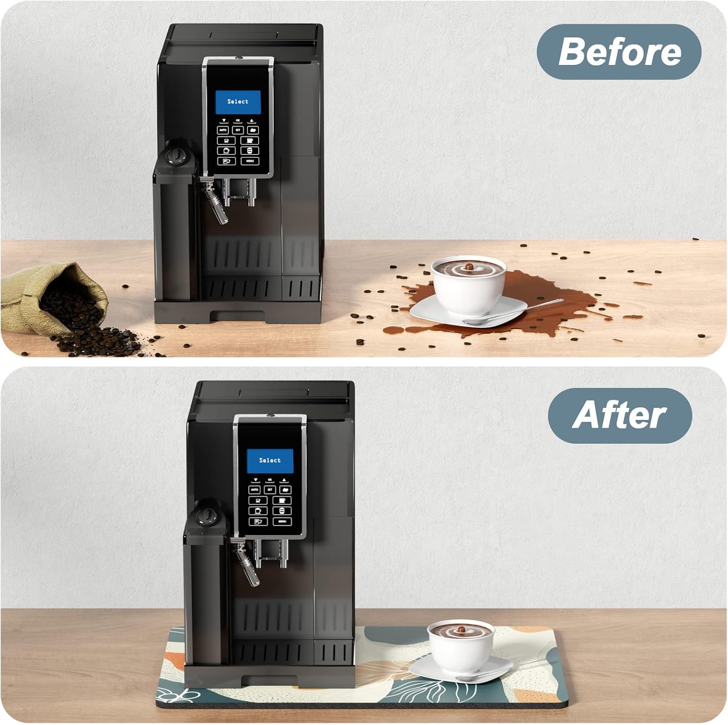 - Easy to Clean: The coffee bar mats for countertop can be cleaned with hand or machine to remove stains, up to 91% porosity material allows coffee bar mats to dry quickly without a machine