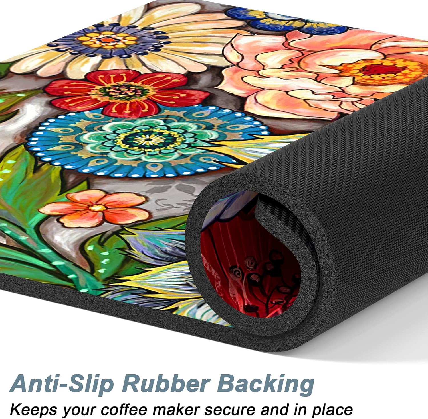 Rnivvi Coffee Mat, 12" x 19" Cute Flower Theme Coffee Bar Mats for Espresso Machine Station Accessories and Organizer, Hide Stain Rubber Backed Absorbent Dish Drying Pad for Kitchen Counter, Mandala