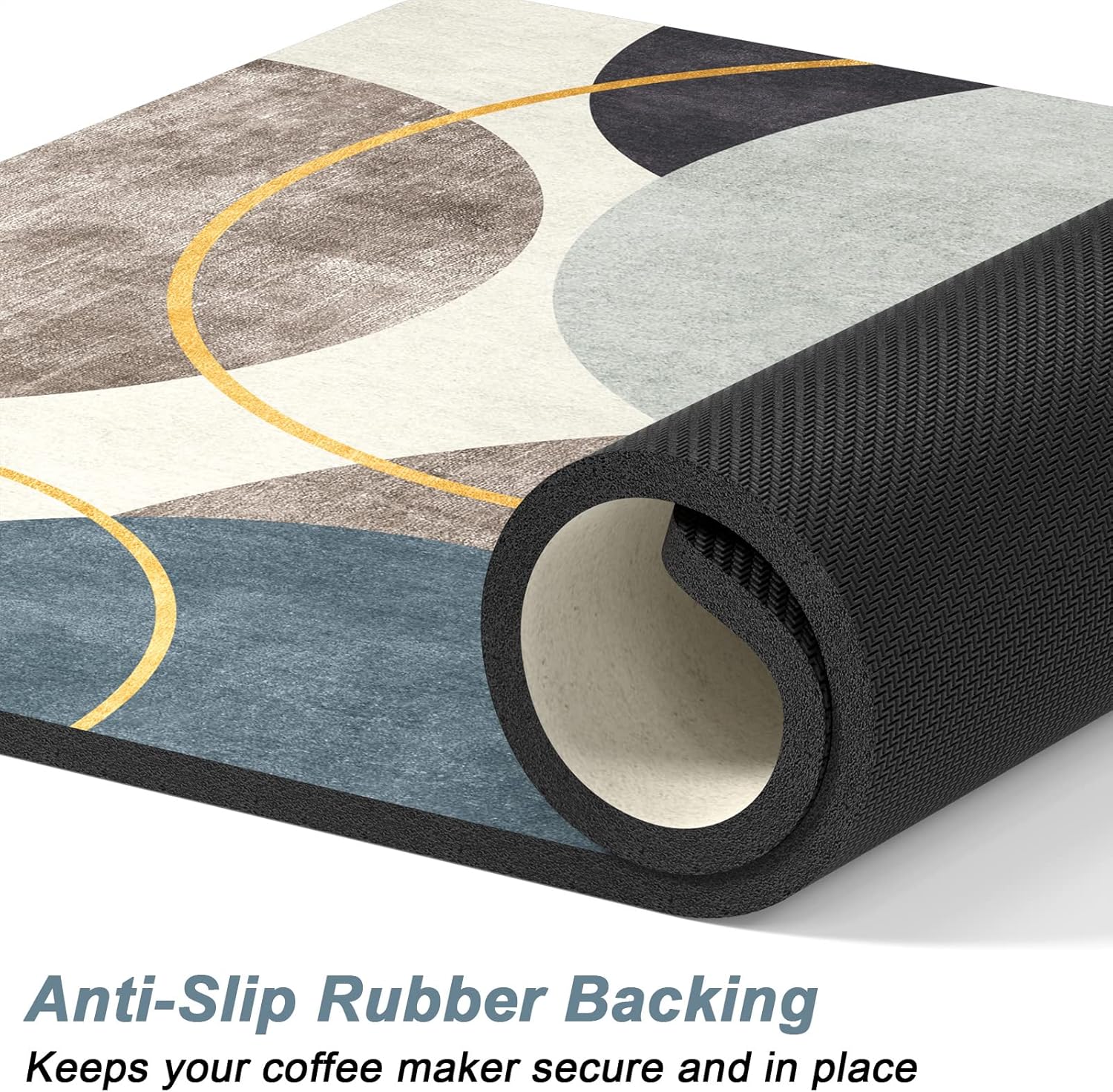- Super Absorbent and Non-slip: Coffee bar decor mat is crafted from absorbent suede and anti-slip rubber. The surface is soft, heat-proofand and can quickly absorb liquid. The anti-slip rubber backing can firmly grip the floor without unwanted sliding