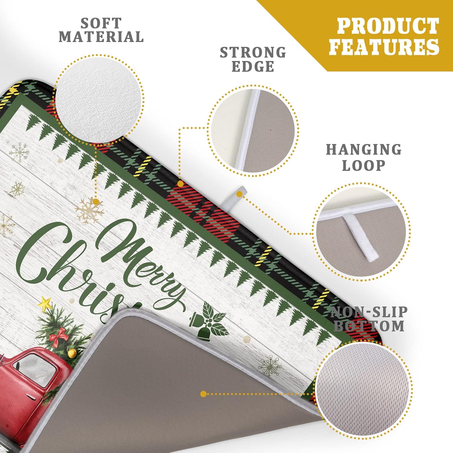 - Dish drying mat size: 18x24 inches, high quality polyester Truck patterned dish drying mat. Made of microfiber,super absorbent and fast drying dish drying mat. Absorbent microfiber, in a 3-layer design without sacrificing its softness. Both sides can be used, one with a Red buffalo plaid and Christmas Tree pattern, the other with a gray non-slip bottom. Holiday drying Mat for Coffee Bar Countertops fits most countertops while providing a smart, sharp look.
