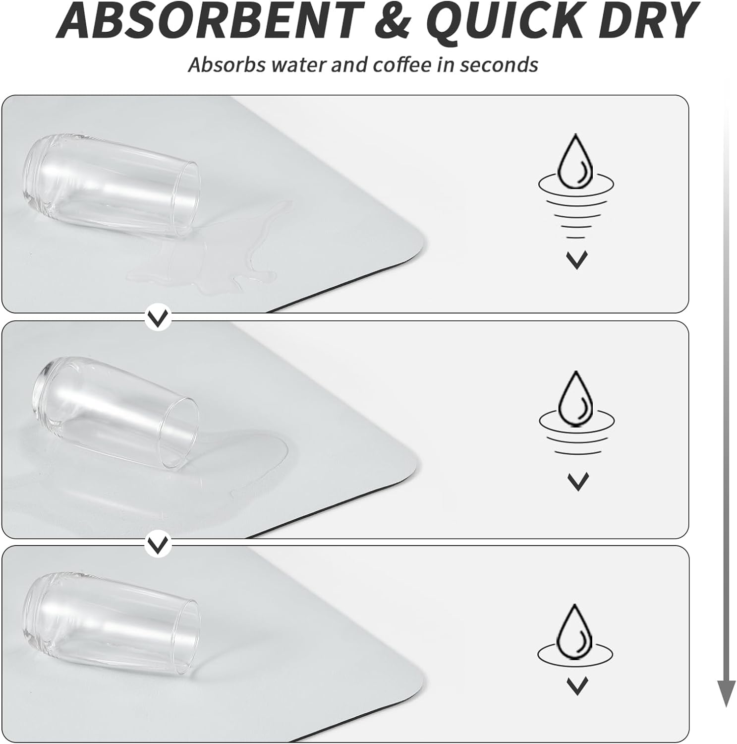 - ☕【Wide range of uses】 It is not just a coffee bar mat, but also a high water absorption and quick dry pad that can be widely used as a drying mat for kitchen countertop, cups, water dispensers, mixers, ice cream machines, dish washing racks, dinner plates, tableware, etc., or as a food pad for pets.