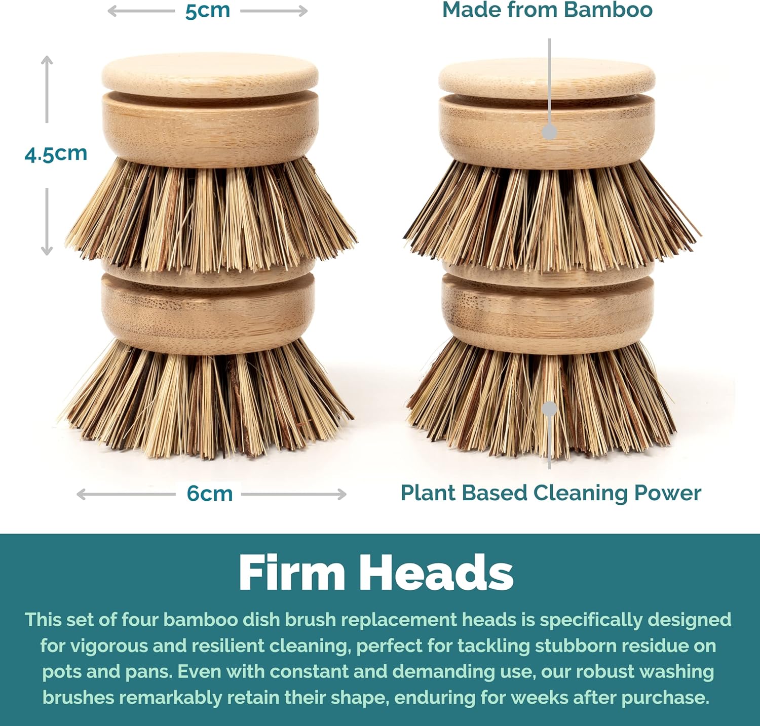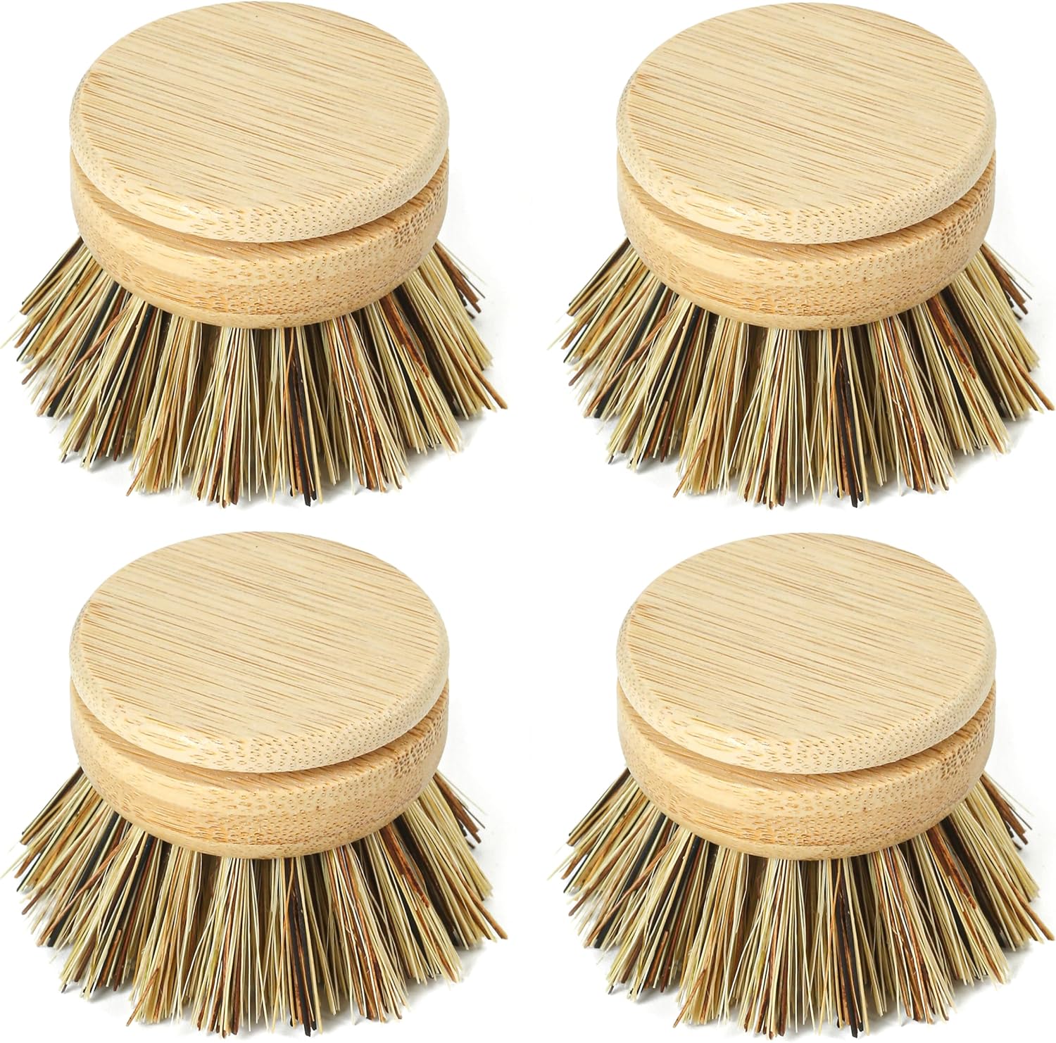 - 🌿 COST-EFFECTIVE & SUSTAINABLE: Our zero waste dishwashing brush set comes with 4 firm bamboo washing up brush heads which are perfect for tackling stubborn pots, pans and plates. The tough sisal and palmyra plant fibres allow you to return your crockery back to life, and are easily attached to your wooden dish brush (sold separately).