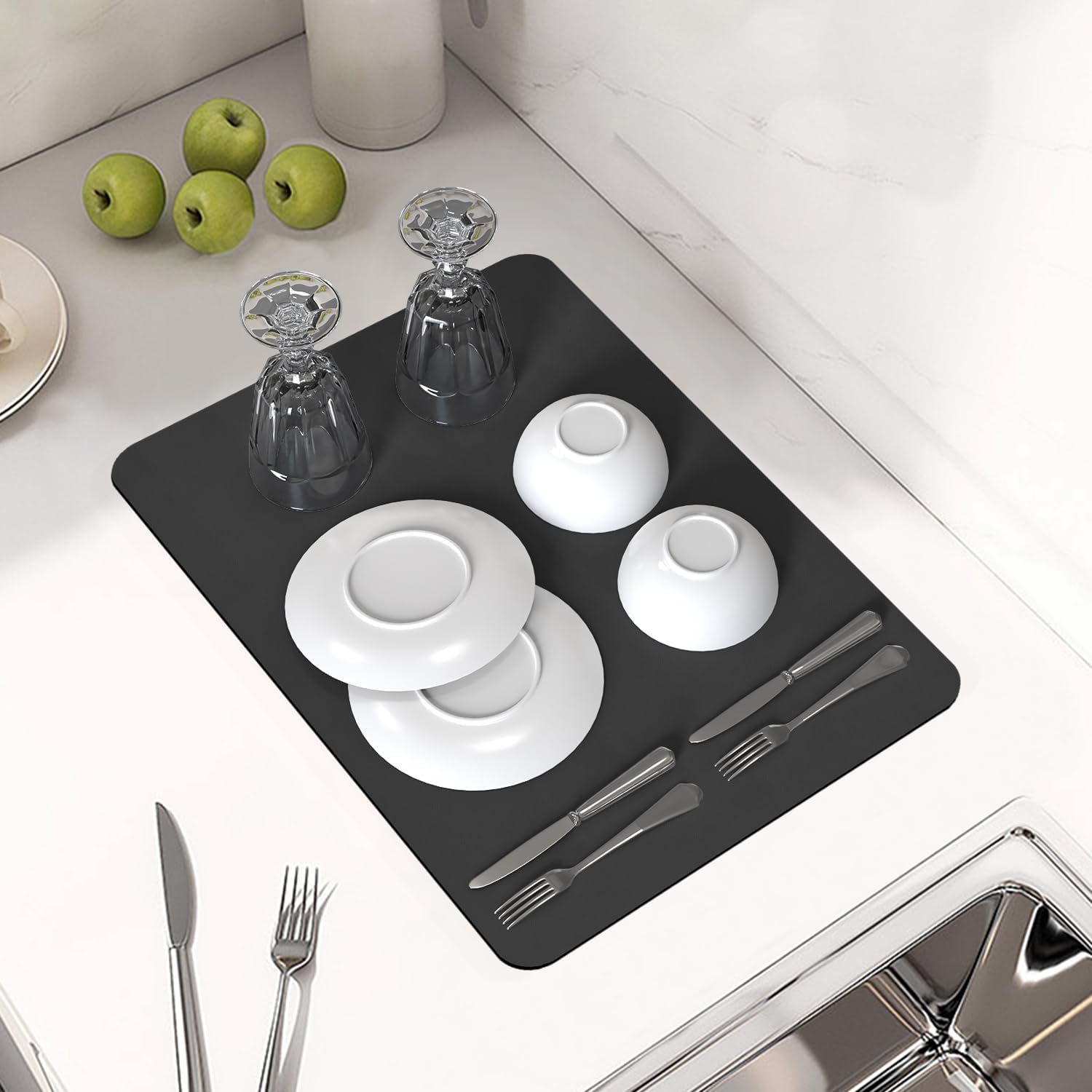 PoYang 17"x12" Coffee Mat Small, Coffee Bar Accessories for Countertop, Absorbent Dish Drying Mat, Anti-Slip and Hide Stain Pad for Espresso Machine, Espresso Maker and Kitchen Counter, Black