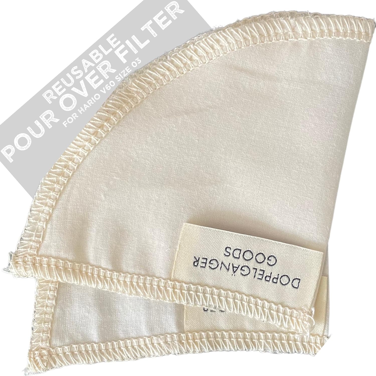 (2-Pack) Reusable Organic Cotton Pour Over Cone Filters for Hario V60 and Chemex Style Style Filters — Pourover Coffee Filter Maker Cup Ceramic, Glass, Plastic Dripper (Size 03, 1-6 Cups)
