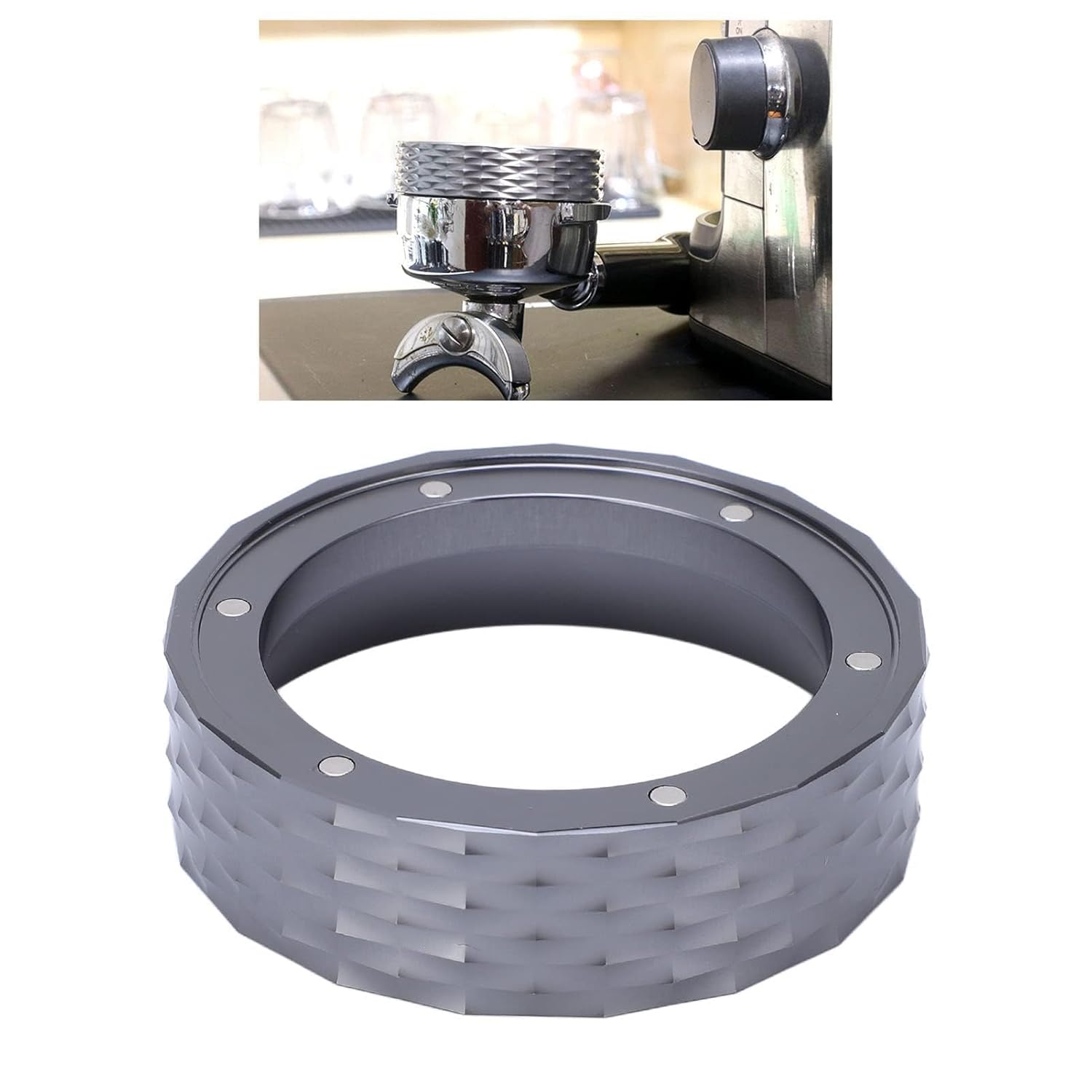 - Keep Work Surface Clean: Magnetic Coffee Dosing Ring prevents ground coffee from spilling out of the filter and messing up your work surface. With the coffee dosing funnel, all the coffee goes into the filter basket.