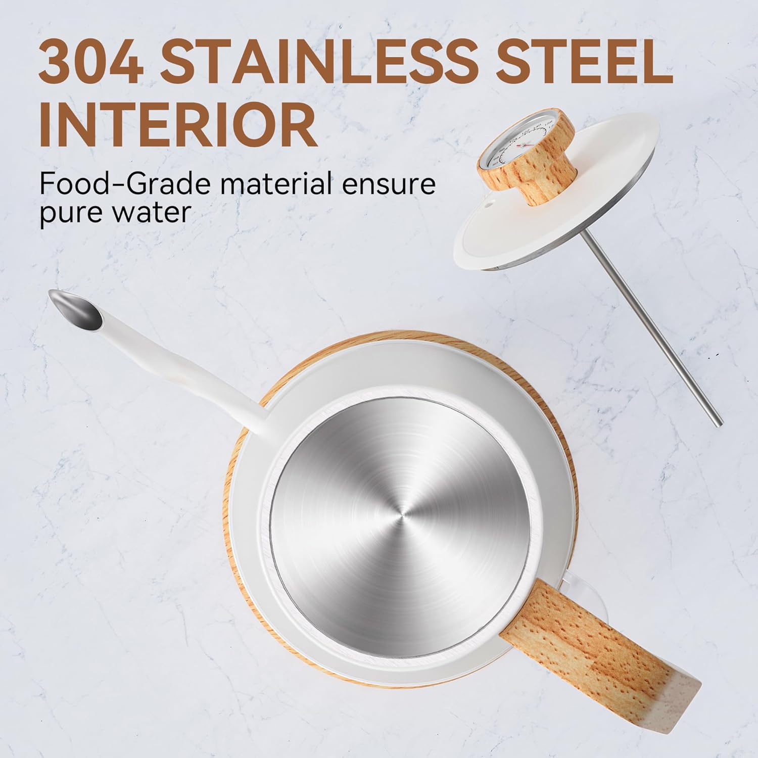 Nueve&Five Gooseneck Electric Kettle with Thermometer,Electric Tea Kettle 1L with Auto Shut-Off,1000W Hot Water Kettle of Stainless Steel for Coffee & Tea -White