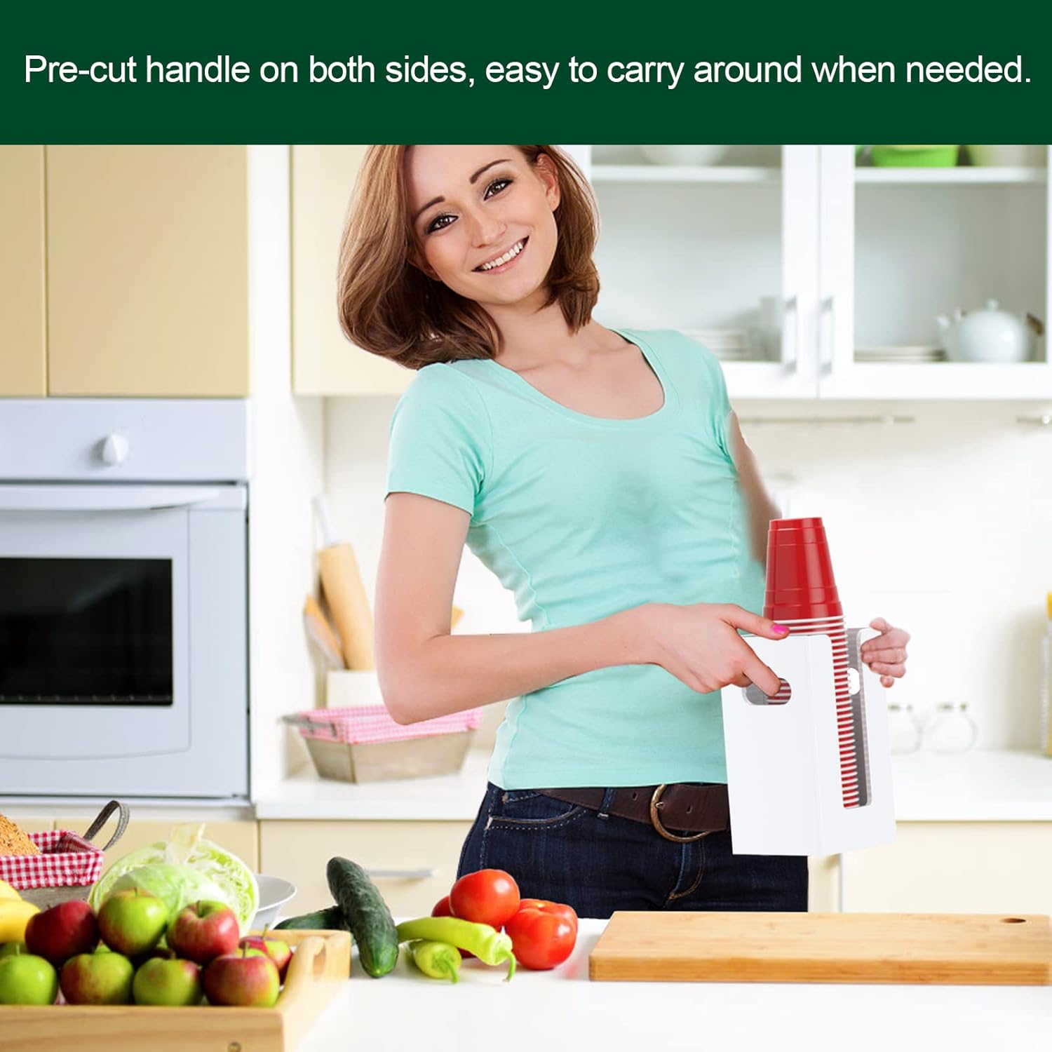 - Cup Dispenser with Handles on Both Sides - pre-drilled handles on side and holes on back, provides more possibilities, either mount it on wall of your kitchen or office, or let it stand along the side of your cabinet in the trailer, you make the decision.