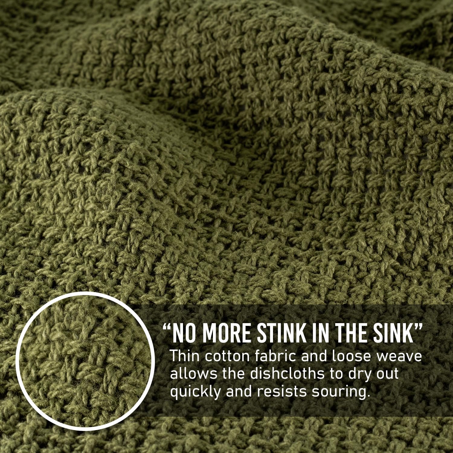 Old Fashion 100% Cotton Dishcloths - Set of 4 Mixed Colors - 2 Sage/2 Natural -11" x 11"