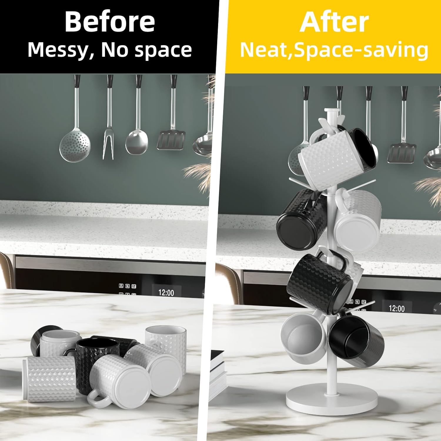 Mug Holder Tree with Marble Base, 8 Hooks White Coffee Cups Holder Stand, New Upgrad Stable Removable Mug Rack for Kitchen Cafe