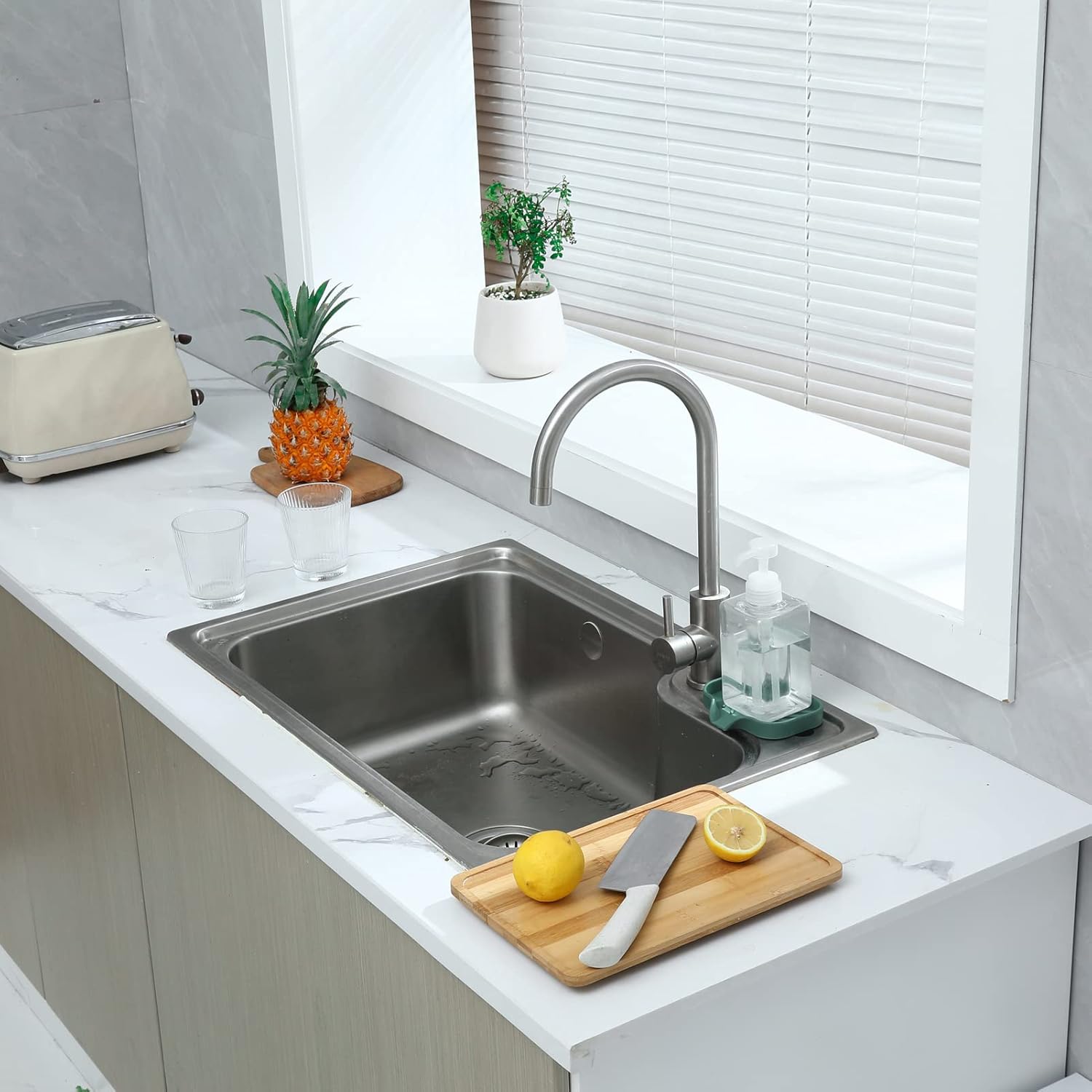 - Food Grade Silicone: The soap dispenser tray is made from high-quality food grade silicone, so it's safe for use in the kitchen or bathroom