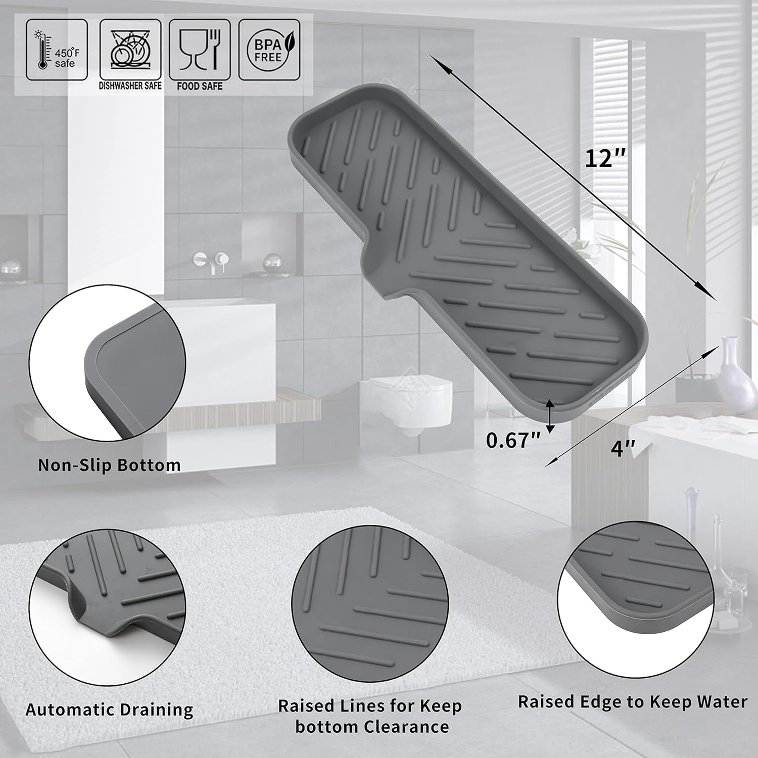 Silicone Bathroom Soap Dishes with Drain Spout-Bathroom and Kitchen Sink Organizer,Sponge Holder,Dish Soap Tray,Perfect for Dispenser,Scrubber,Bottle,Cup on Sink or Counter-Grey 12"×4"