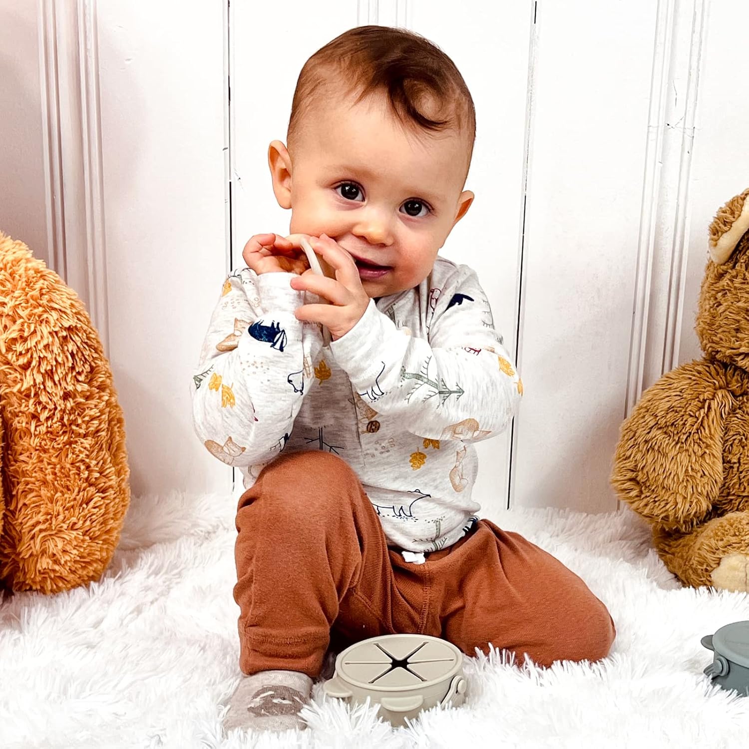 - DESIGNED FOR BABIES: Our no spill snack cups for toddlers features soft flaps that allow tiny hand to reach in while preventing inconvenient spills. The smooth edges and soft silicone of this snack holder double as a baby teether as well.