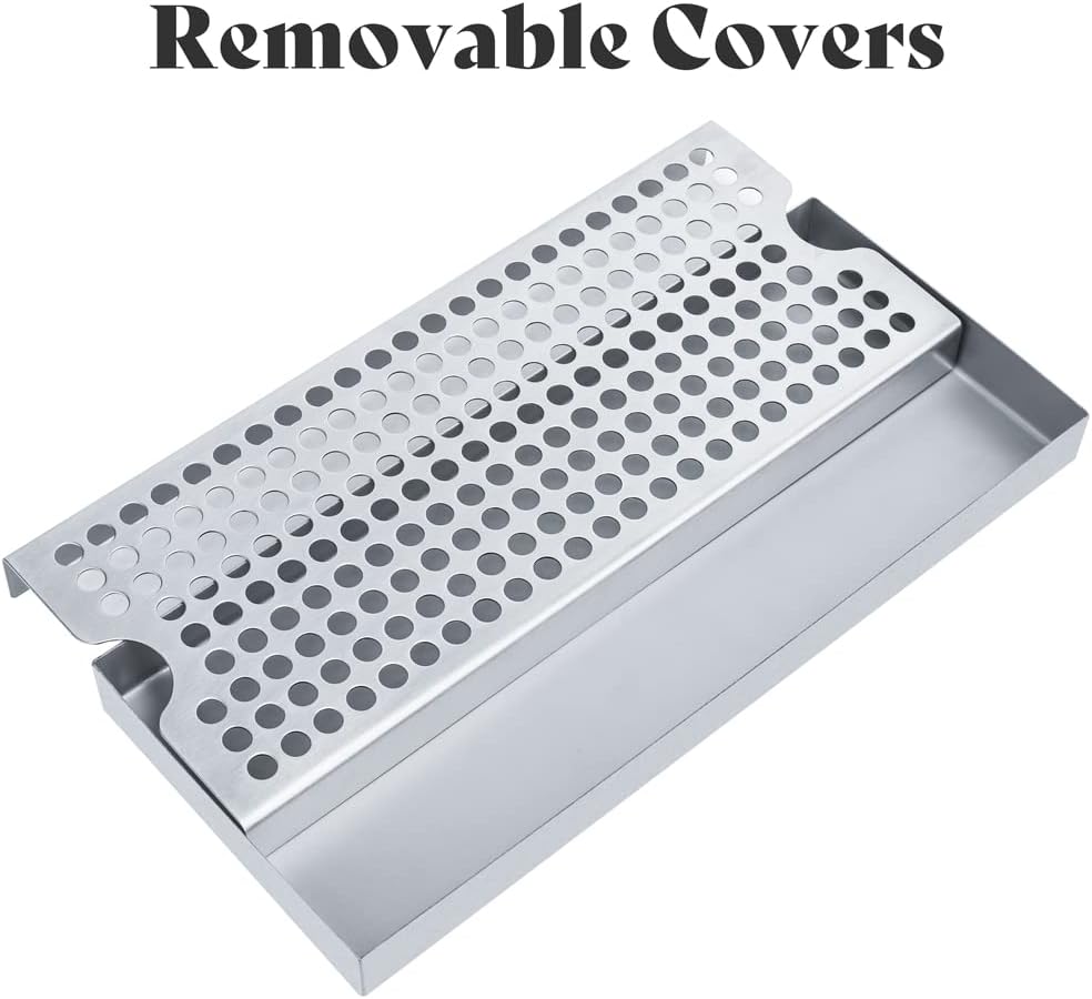 - Easy to Clean: It comes with removable covers for convenient cleaning and no need to spend for plumbing lines. This surface drip tray has no drain hole below which makes it very easy to clean, simply empty the tray and rinse it with water.