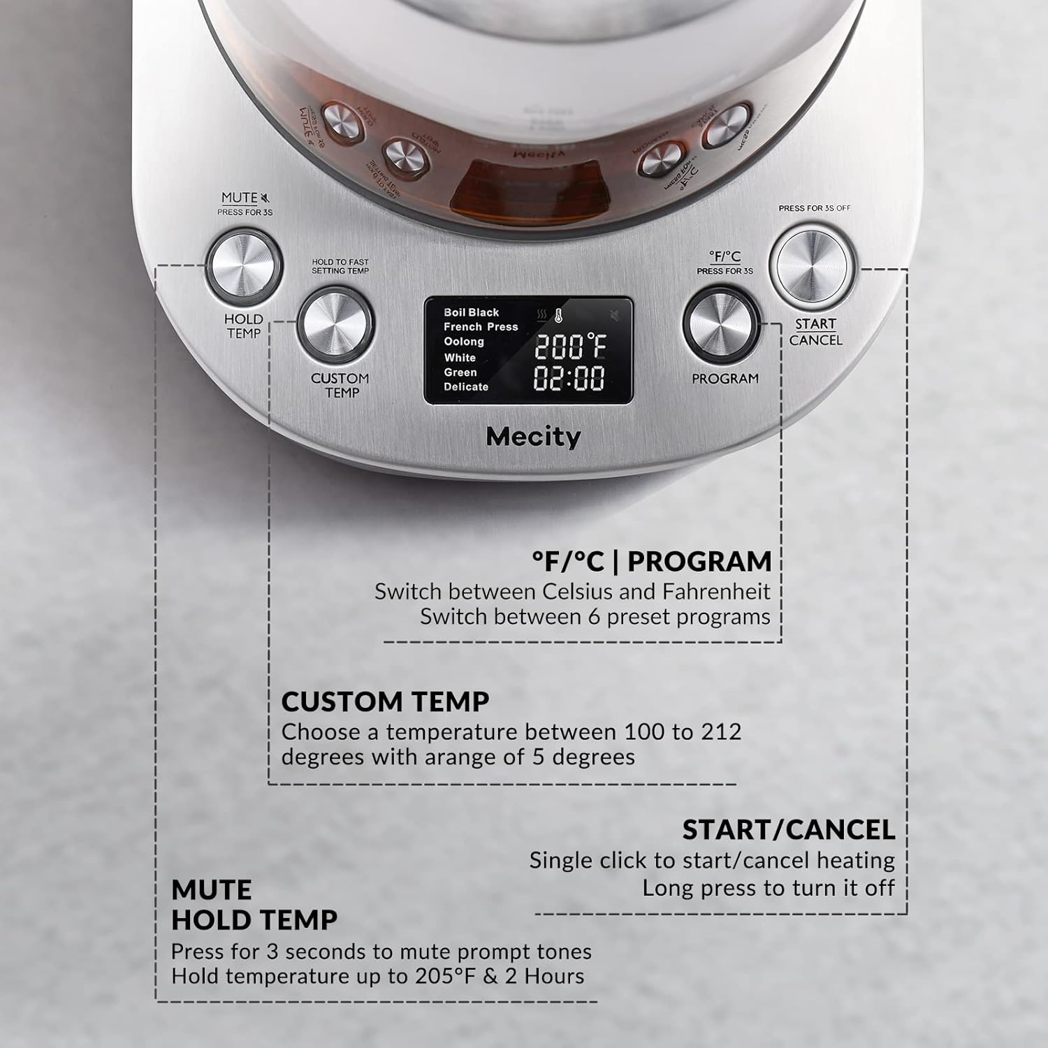 - 𝑷𝒓𝒐𝒇𝒆𝒔𝒔𝒊𝒐𝒏𝒂𝒍 𝑻𝒆𝒂 𝑴𝒂𝒌𝒆𝒓 - Mecity tea kettle is designed for tea lovers, made of solid materials and equipped with advanced programs, you can always enjoy the fragrance of tea and health benefits of tea with Mecity Teapot