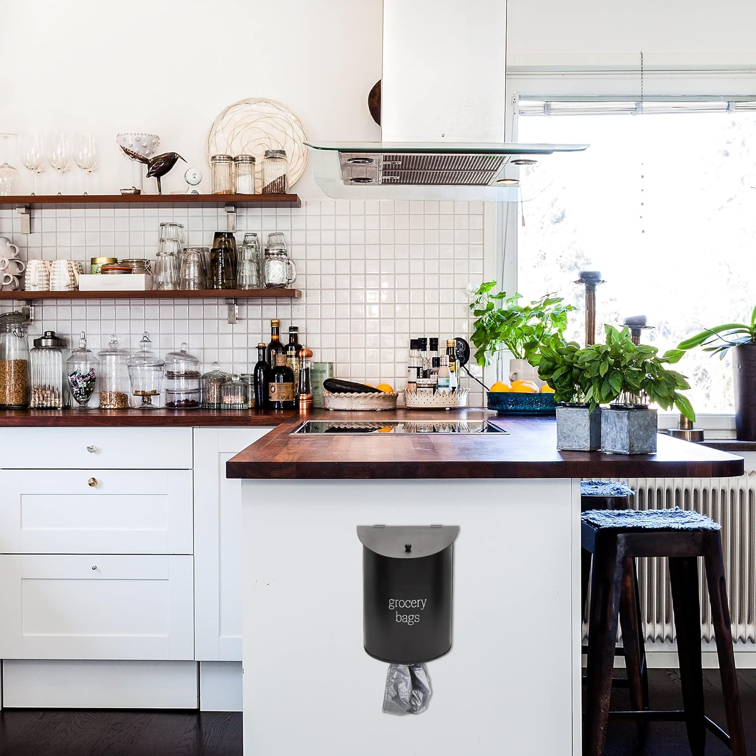 AuldHome Design Enamelware Grocery Bag Holder (Black); Wall-Mounted Modern Farmhouse Style Plastic Bag Dispenser for Kitchen or Laundry Room