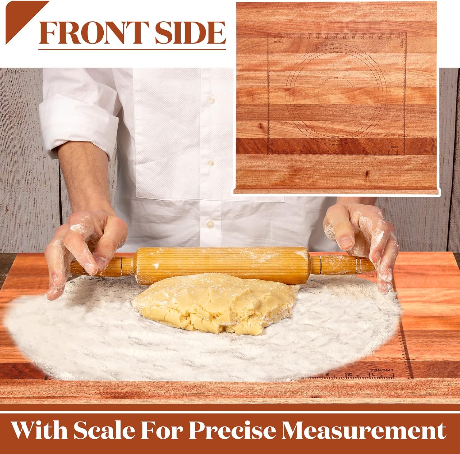 - Extra Large Size: the wooden pastry board for rolling dough measures approx. 24 x 22.8 x 1.5 inch, and it feathers with 2 in 1 design, one side is smooth for kneading or rolling dough, the other side can act as cutting board, maximize utilization to save your kitchen space, and make your kitchen more tidy and orderly