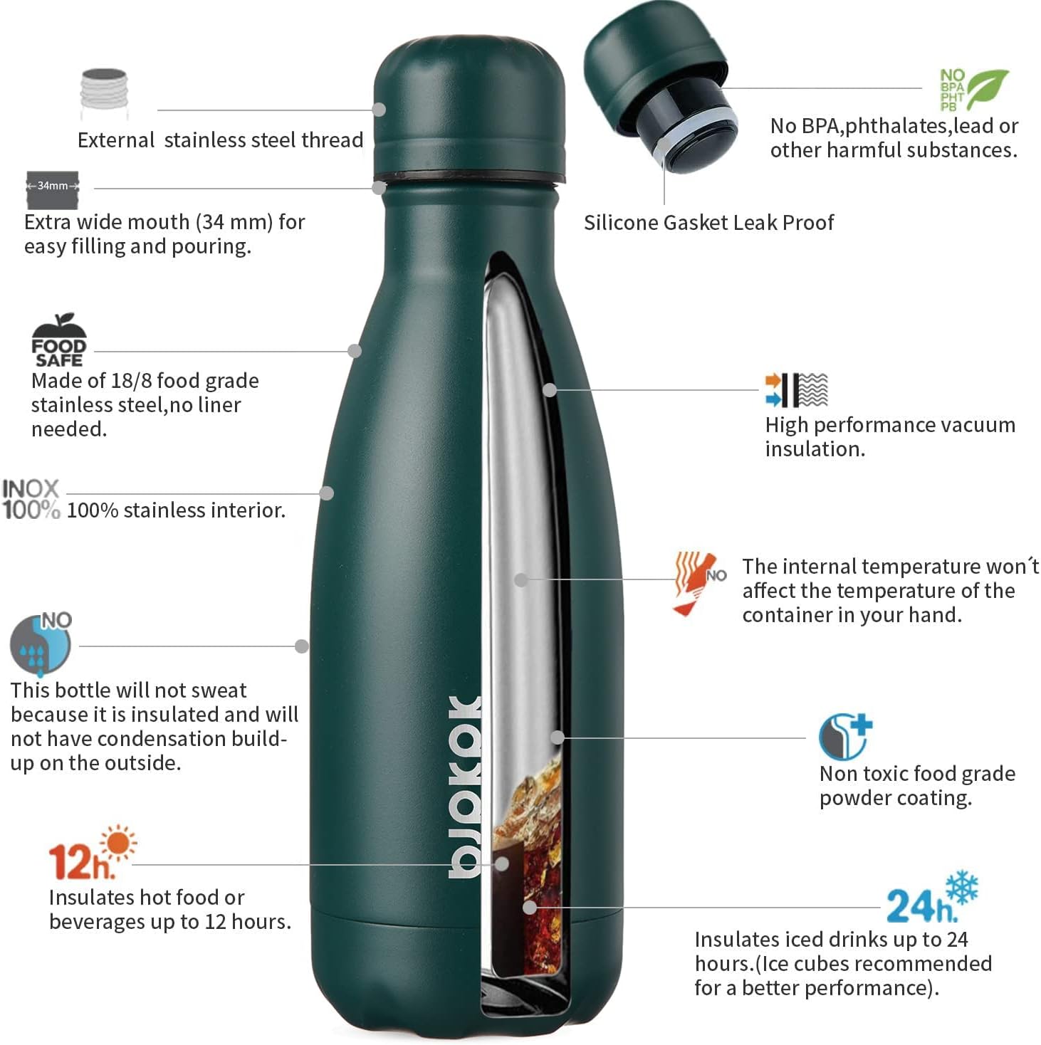 - Keep Drinks Cold & Hot: Adopt double wall vacuum insulation design, keep your drinks ice cold for 24 hours and hot for 12 hours within our highly performed insulated water bottle
