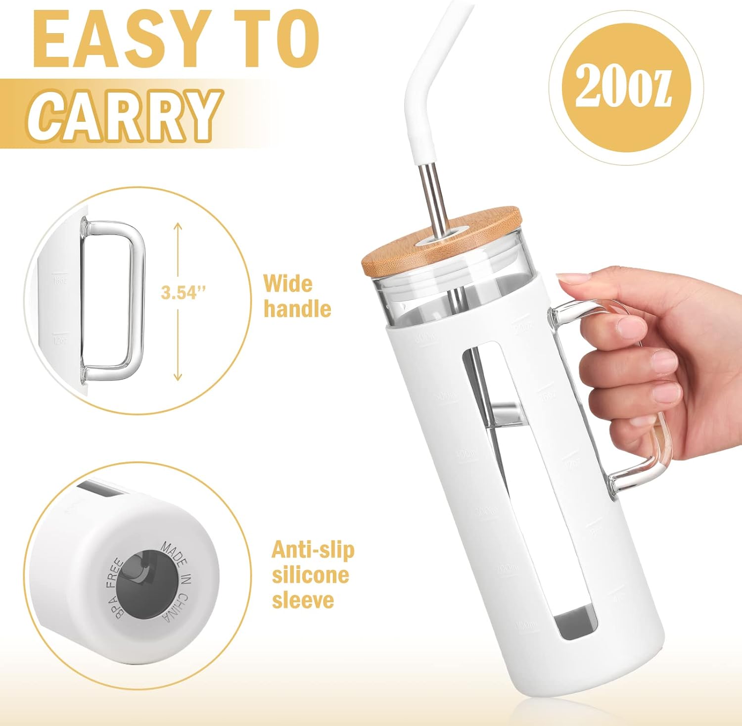 - URABLE BOROSILICATE GLASS- This 20 oz tumbler with handle is made of borosilicate glass, which is stronger and more durable than other glass. Suitable for temperatures from -4℉ to 300 ℉. All materials are guaranteed food grade, BPA-free, odor-free and pollution-free.