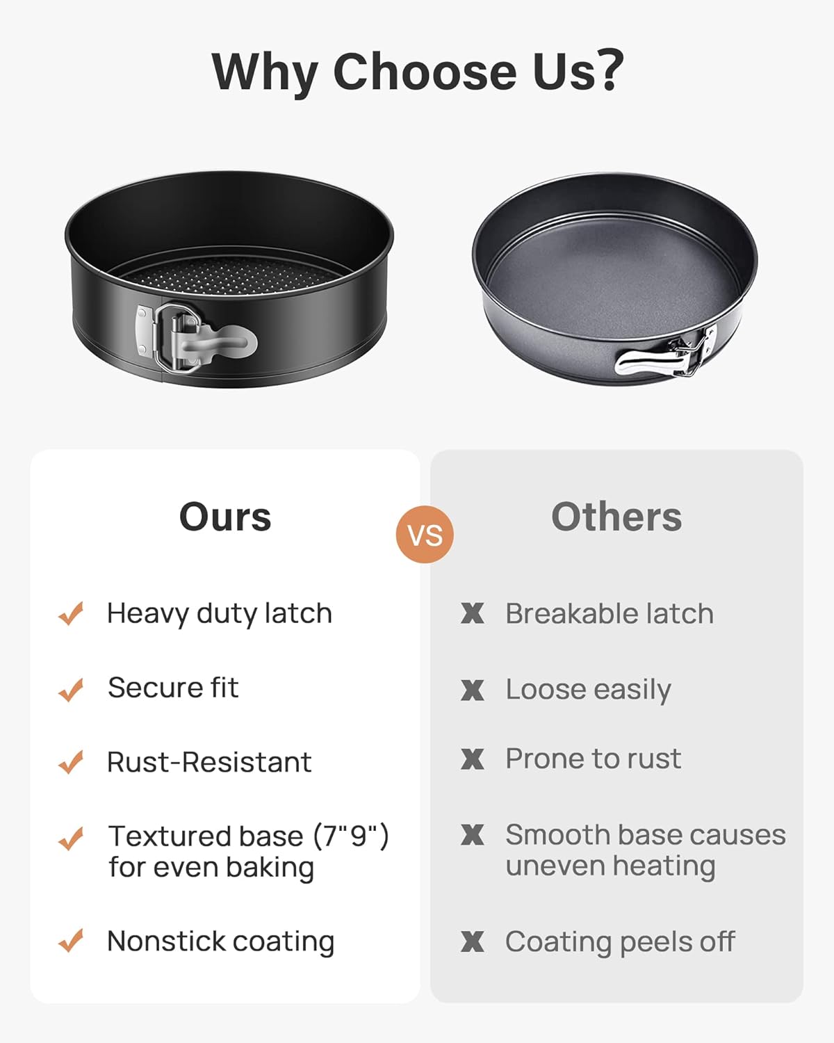 - Durable, Even-Heating Springform Pans: Made from high-quality carbon steel, the spring cake pans heat evenly and resist warping, providing consistent baking results. Oven-safe up to 450°F, these springform pans, including the 9-inch chessecake springform pan, are essential baking tools for both novice and expert bakers alike