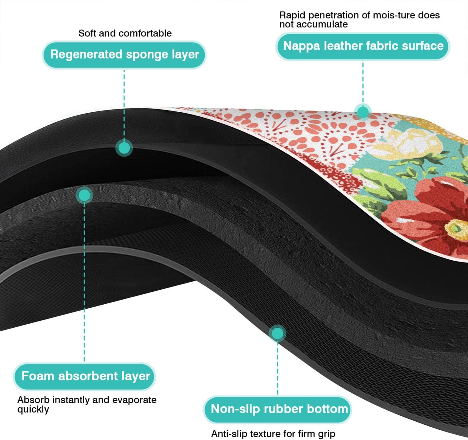 Rubber Dish Drying Mat for Kitchen Counter Large Boho Flowers Washable Quick Home Coffee Pad Fit Under Sink,Bar,Utensils 16x18in