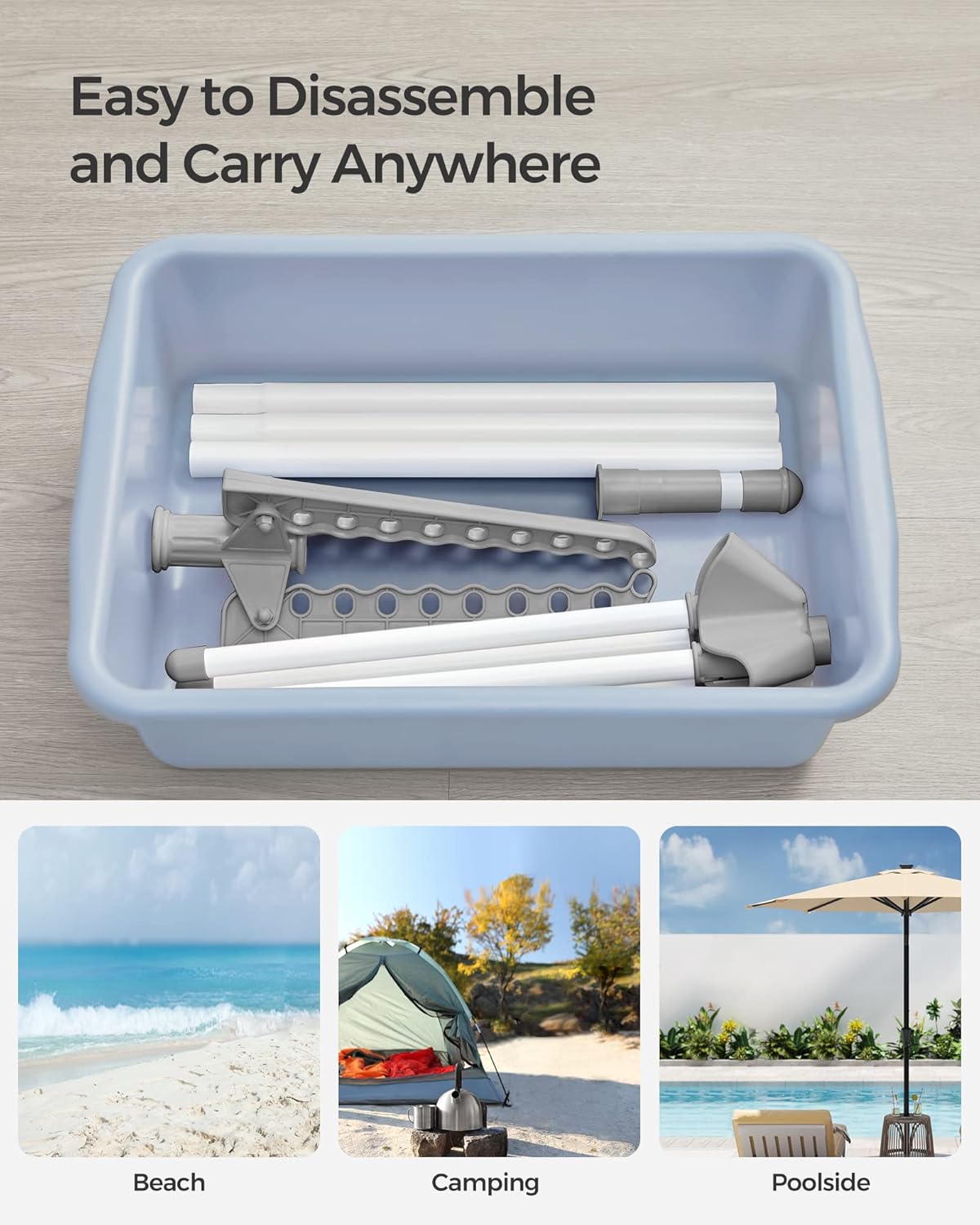 - [Easy to Set Up and Carry Around] The rack comes in 7 parts, making it easy to set it up or take it down in a minute, so you can bring it with you for drying clothes when camping