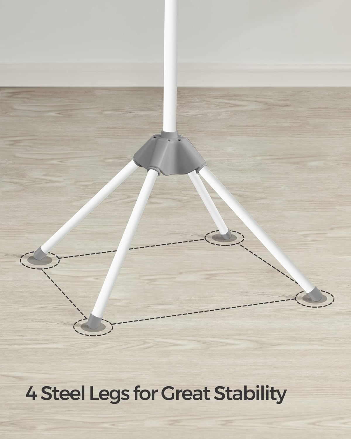 SONGMICS Clothes Drying Rack, 59-Inch Folding Laundry Drying Rack with 3 Rotatable Arms for Hangers, 4 Legs, Stainless Steel, for 27 Pieces of Clothes, Gray and White ULLR510G01