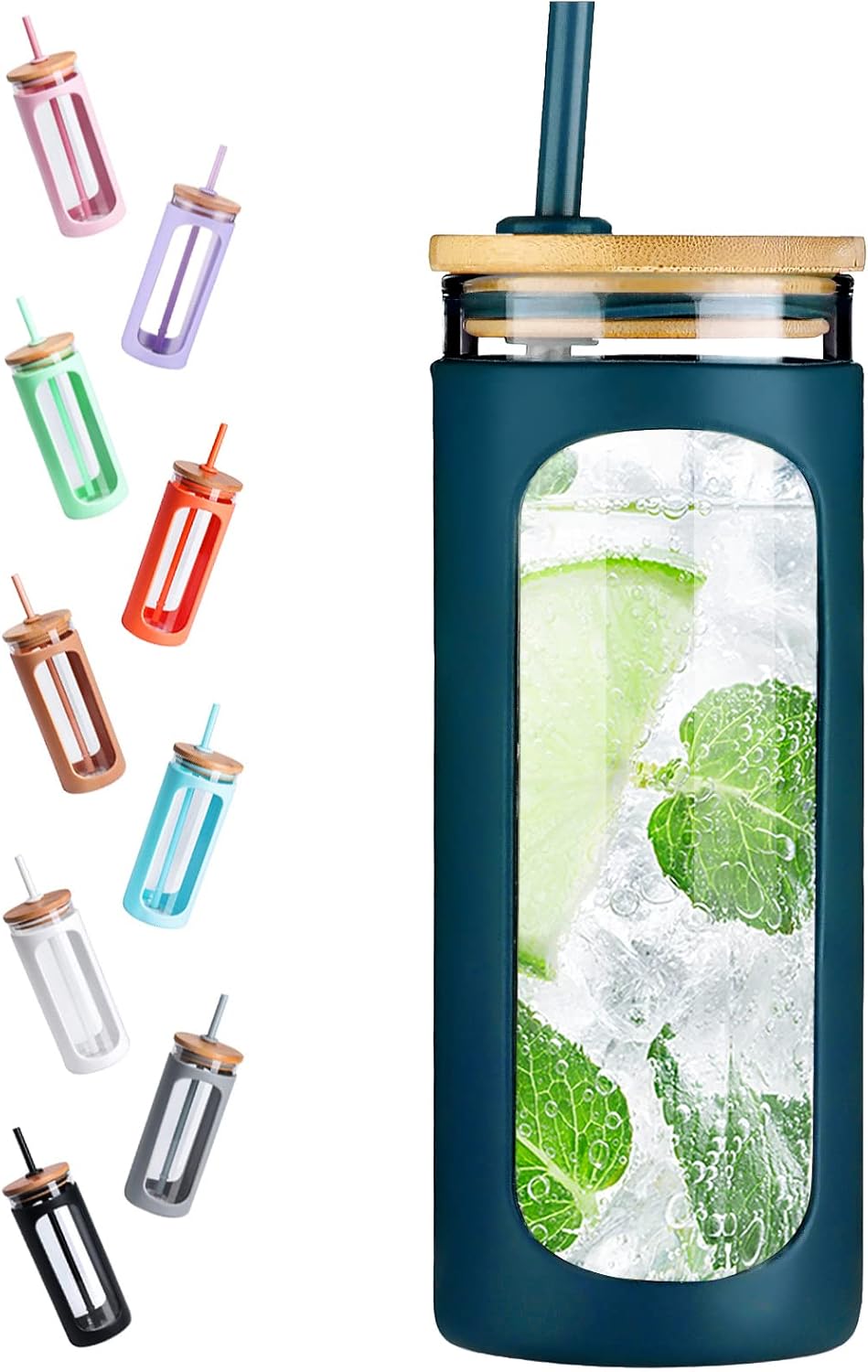 - MADE OF FOOD GRADE SILICONE: Glass cup with lid and straw features with nonslip silicone sleeve, which is a non-toxic material that does not contain any chemical fillers or byproducts, making it safe for use. The 20 oz Glass Tumbler is 2.9"- 7.4", which can fit in most car cup holders. With a wide mouth slot, you can easily put coffee powder,ice cubes,fruit,smoothies etc. which is also easier to clean
