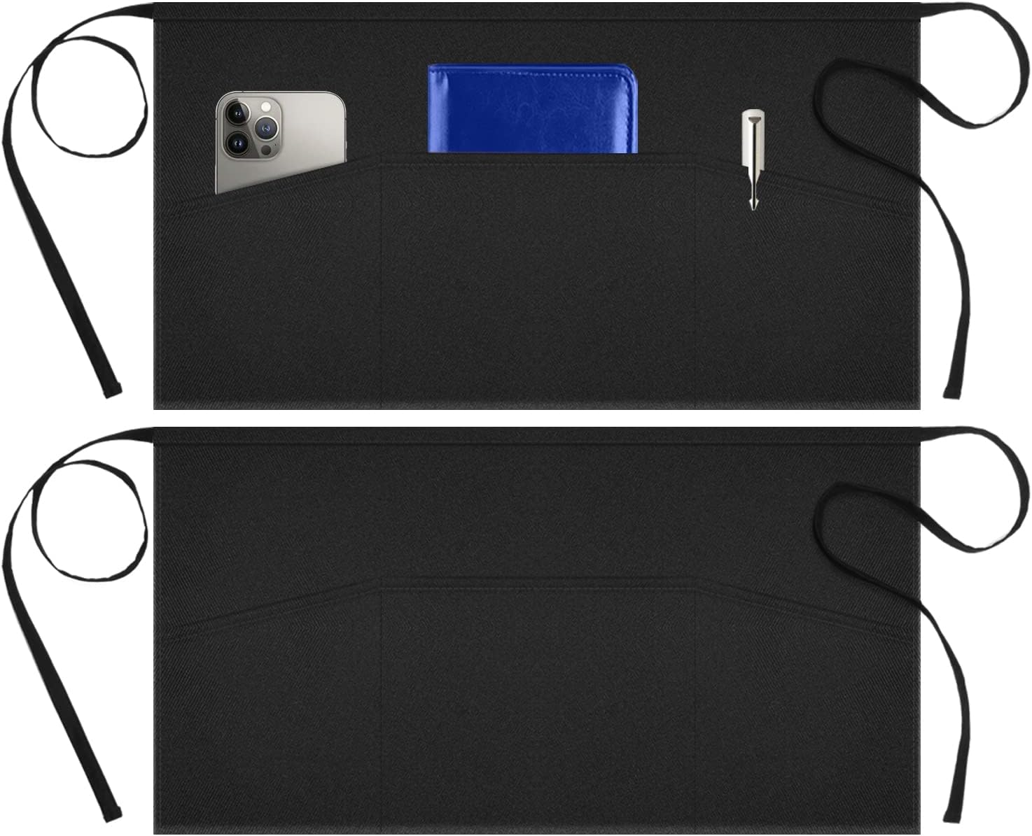 Syntus 2 Pack Server Apron with 3 Pockets, Waterdrop Resistant Waitress Waiter Waist Apron, 11.5-inch Black