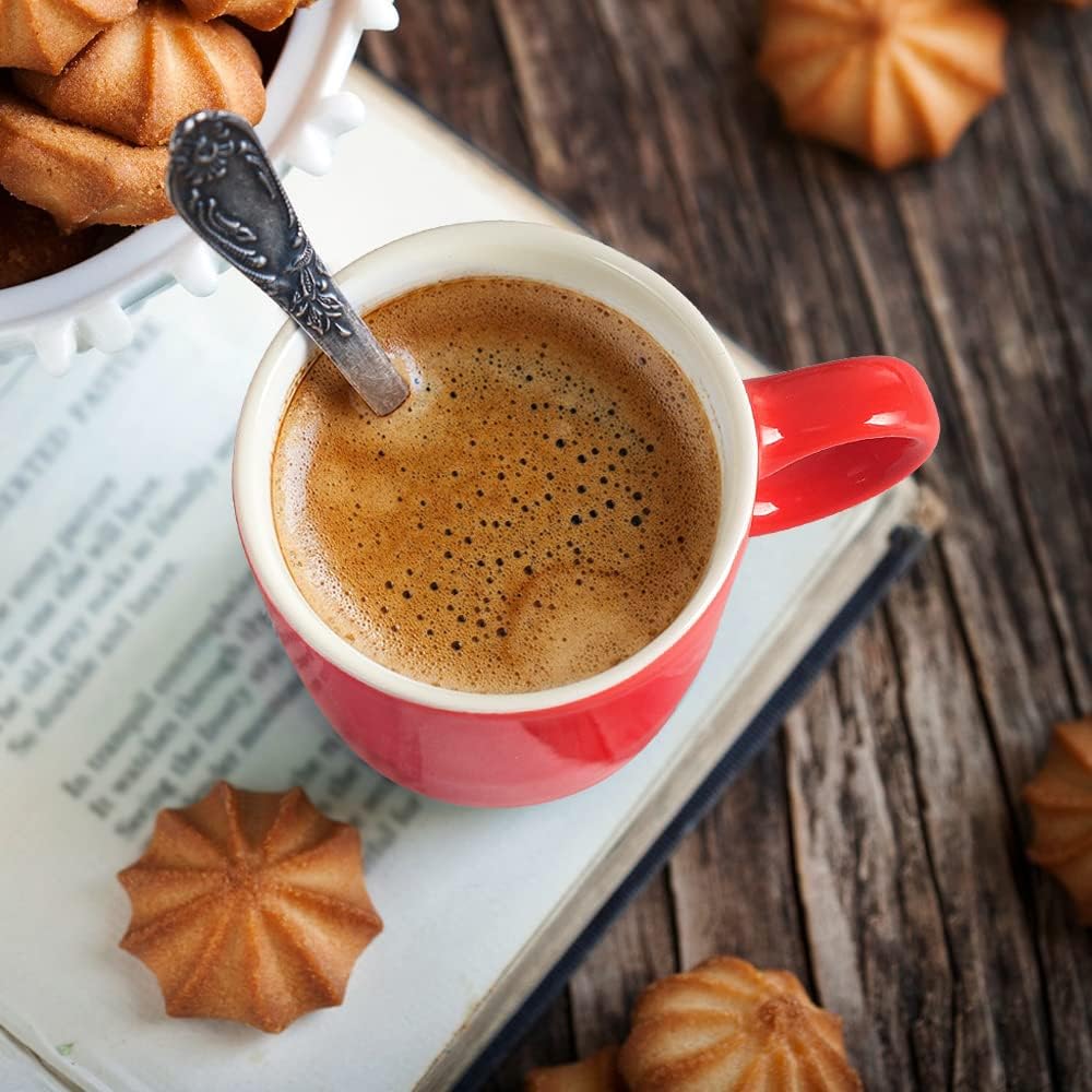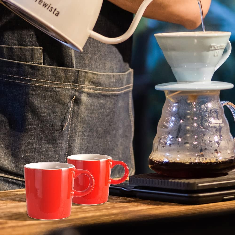 homEdge Mini Procelain Espresso Cup, 4 Ounces / 120 ml Tiny Ceramic Coffee Mugs Demitasse for Espresso, Tea- Set of 6, Red