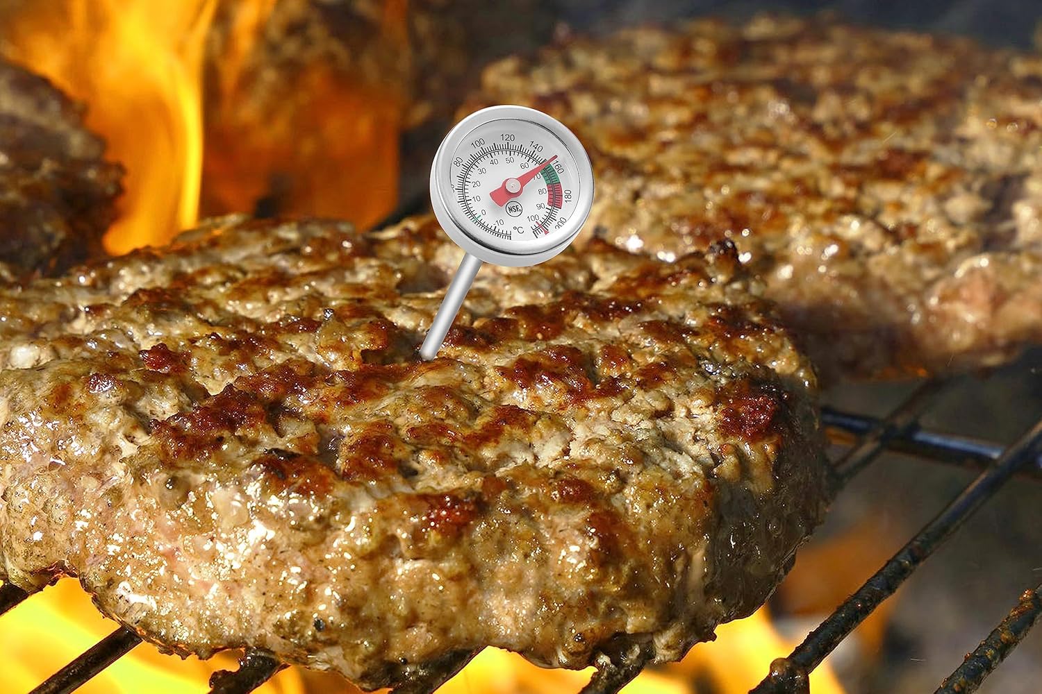 - [Instant Read Food Thermometer]: This 2 pack meat thermometer Temperature Range: 0° to 220°F / -20° to 100°C. Probe Length: 5-inches, Dial Diameter: 1-inches, A Cooking Thermometer displays true food temperature instantly to ensure safe food preparation.