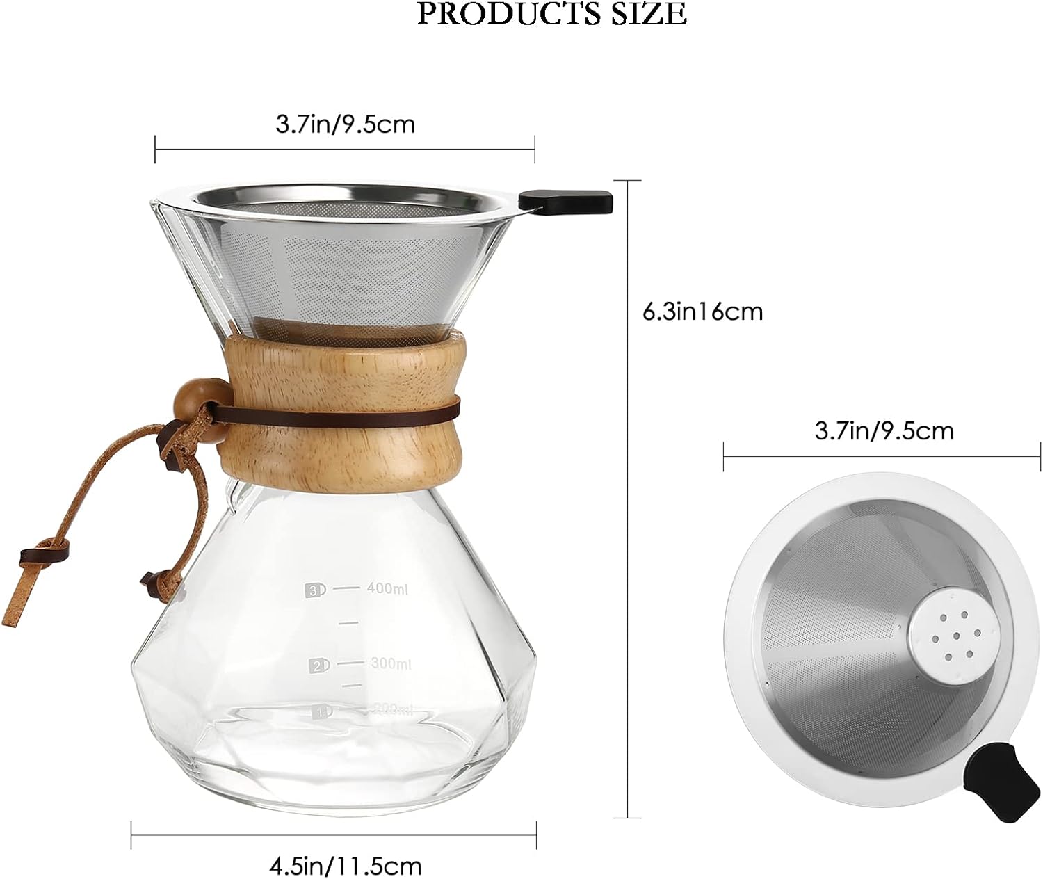 - 【Stove and Diswasher Safe】Our pour over coffee pot is made of strong non-porous borosilicate glass, which can easily withstand high temperatures up to 150℃(302℉); for quick and easy cleaning, simply place the metal filter and coffee maker in dishwasher.