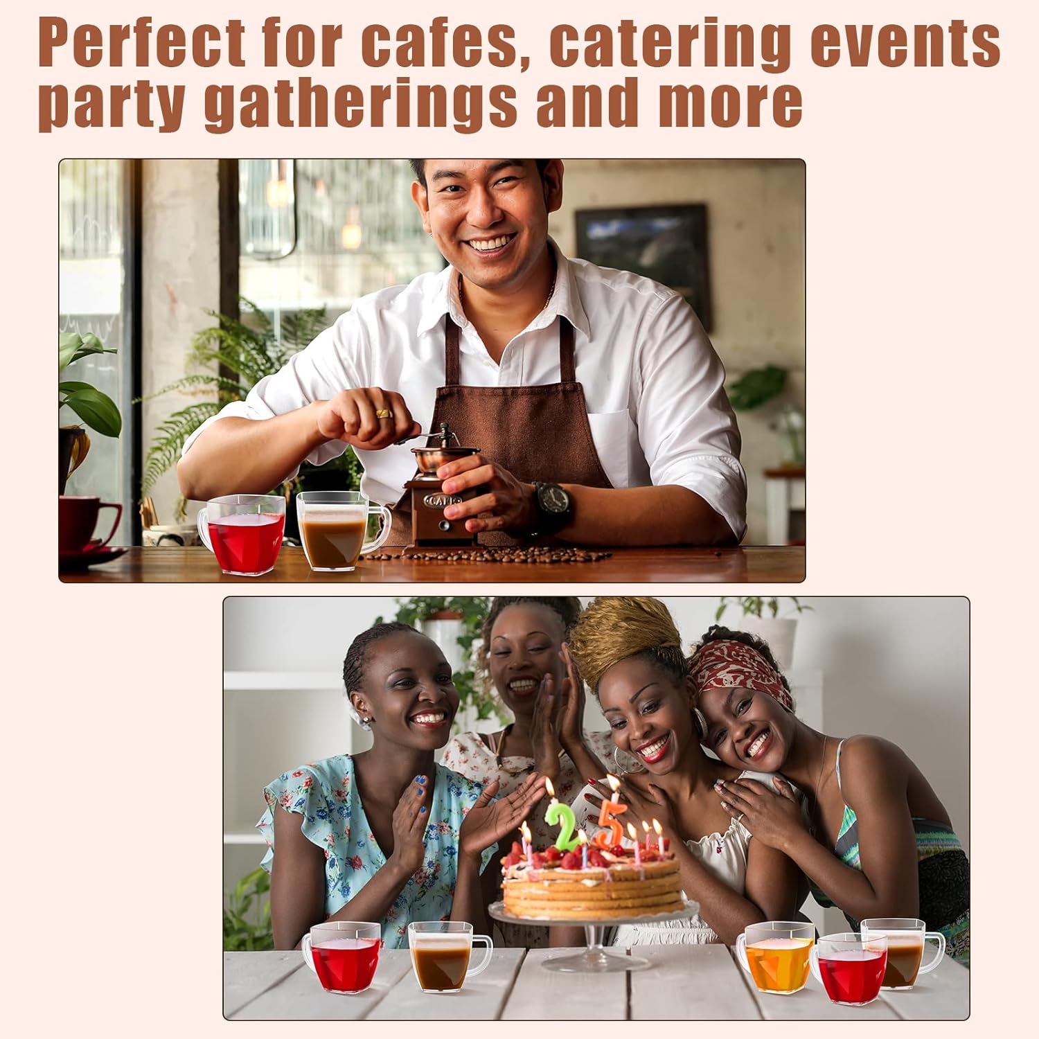 - Save Time: the plastic coffee cups with handles adopt a disposable design, just throwing them after using, saving time and energy for cleaning, you will have more time to enjoy the parties with other people; Besides, you can also reuse or repurpose if you want