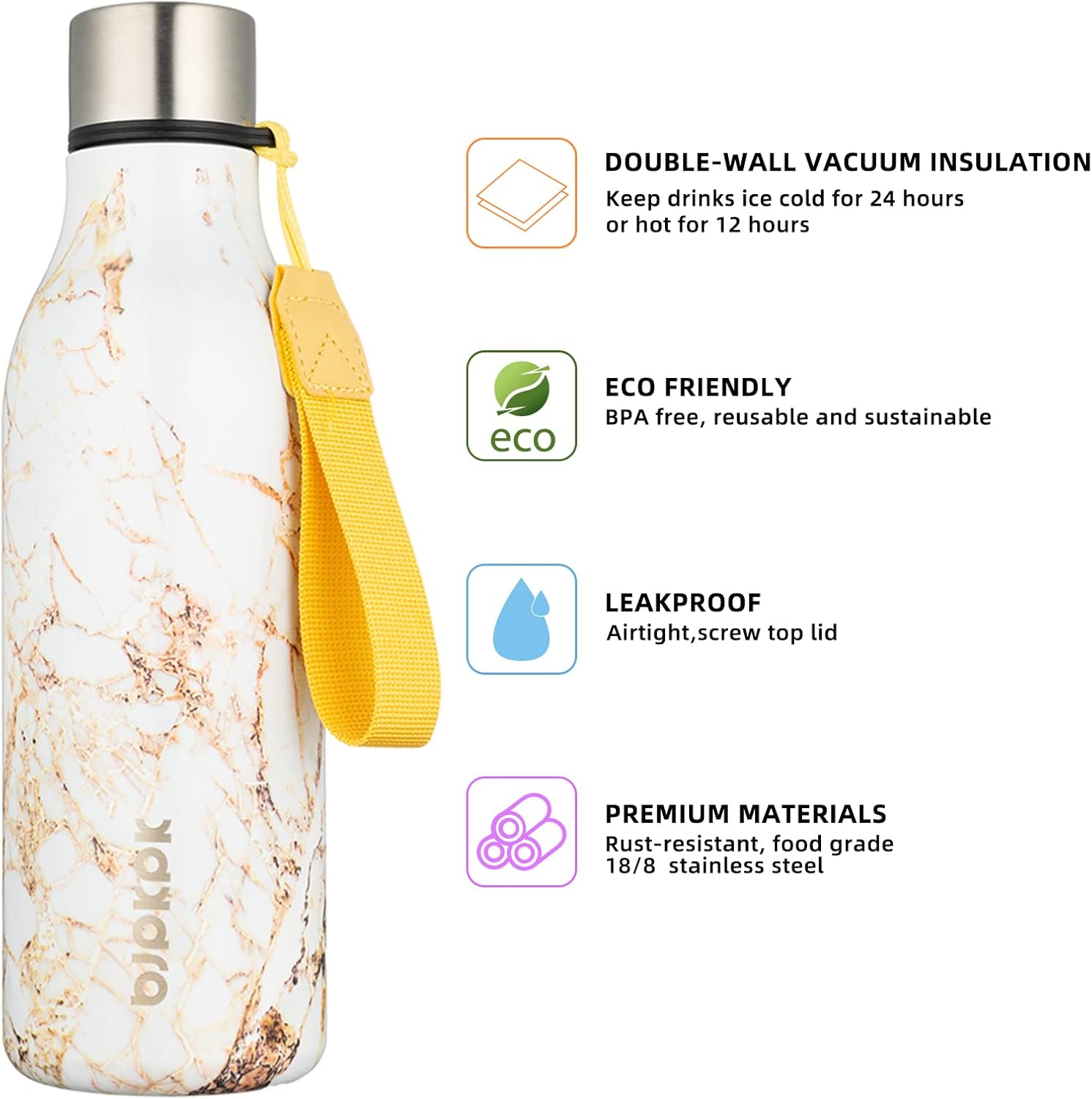 BJPKPK Insulated Water Bottles, 18 oz Stainless Steel Metal Water Bottle with Strap, BPA Free Leak Proof Thermos, Mugs, Flasks, Reusable Water Bottle for Sports & Travel, Marble-Amber