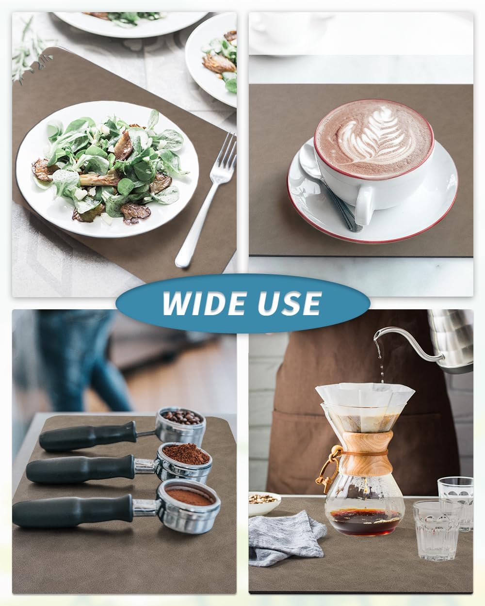 - NO WATER MARKS: 0.2" thick special PU surface hide coffee stains, milk stains and any other dark messy stains well. Say goodbye to traditional coffee mat full of stains