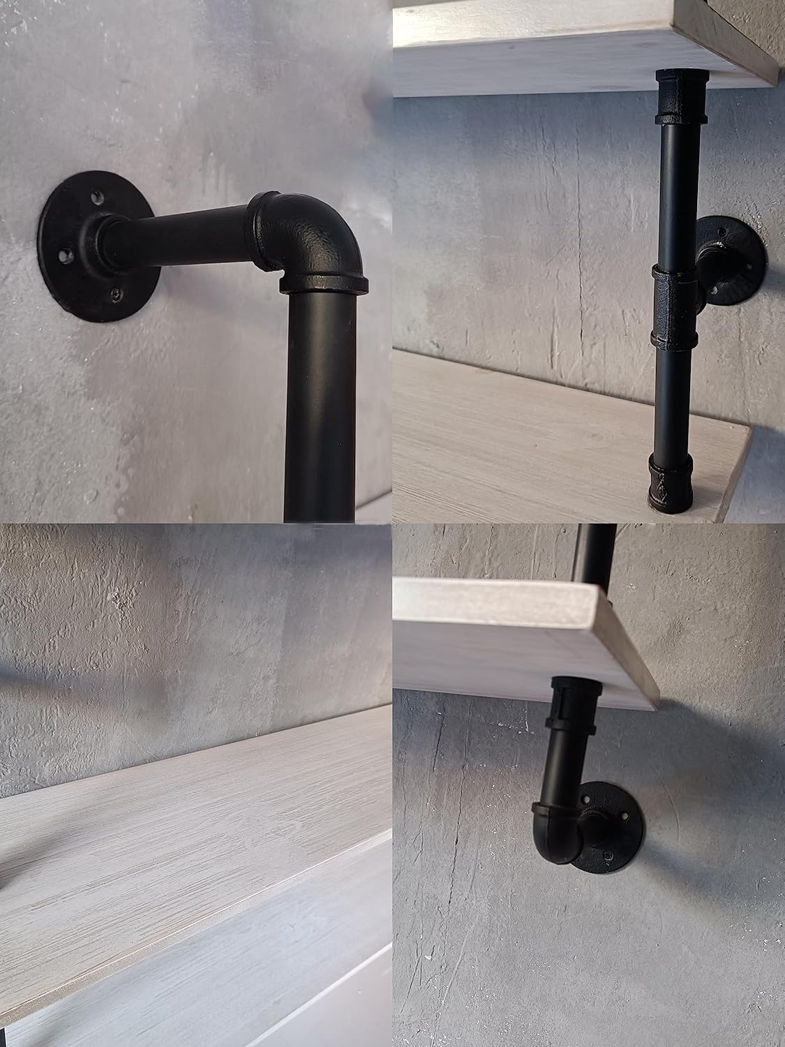 - 【Easy to assemble and hang】 Industrial pipe shelves comes with all the mounting hardware (screws and drywall screw anchor) and the pipe wall shelf is mounted with four pipe flanges each with four screw holes and comes well-protected in bubble wrap. Needs a drill and smaller hammer to install these.