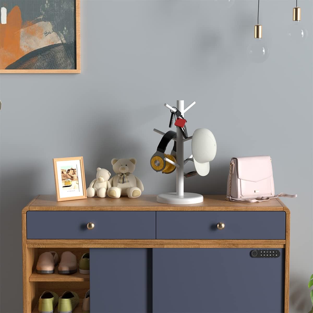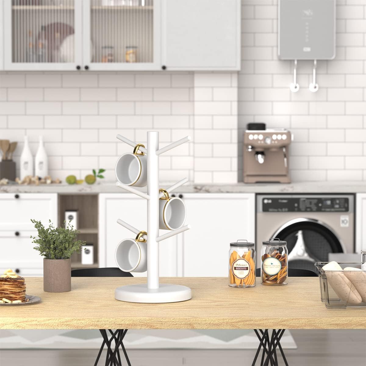 Dorhors Mug Holder Tree,Coffee Cup Holder with 6 Hooks, Wood Mug Rack for Counter,Coffee Bar Accessories and Orgnizer Station,White