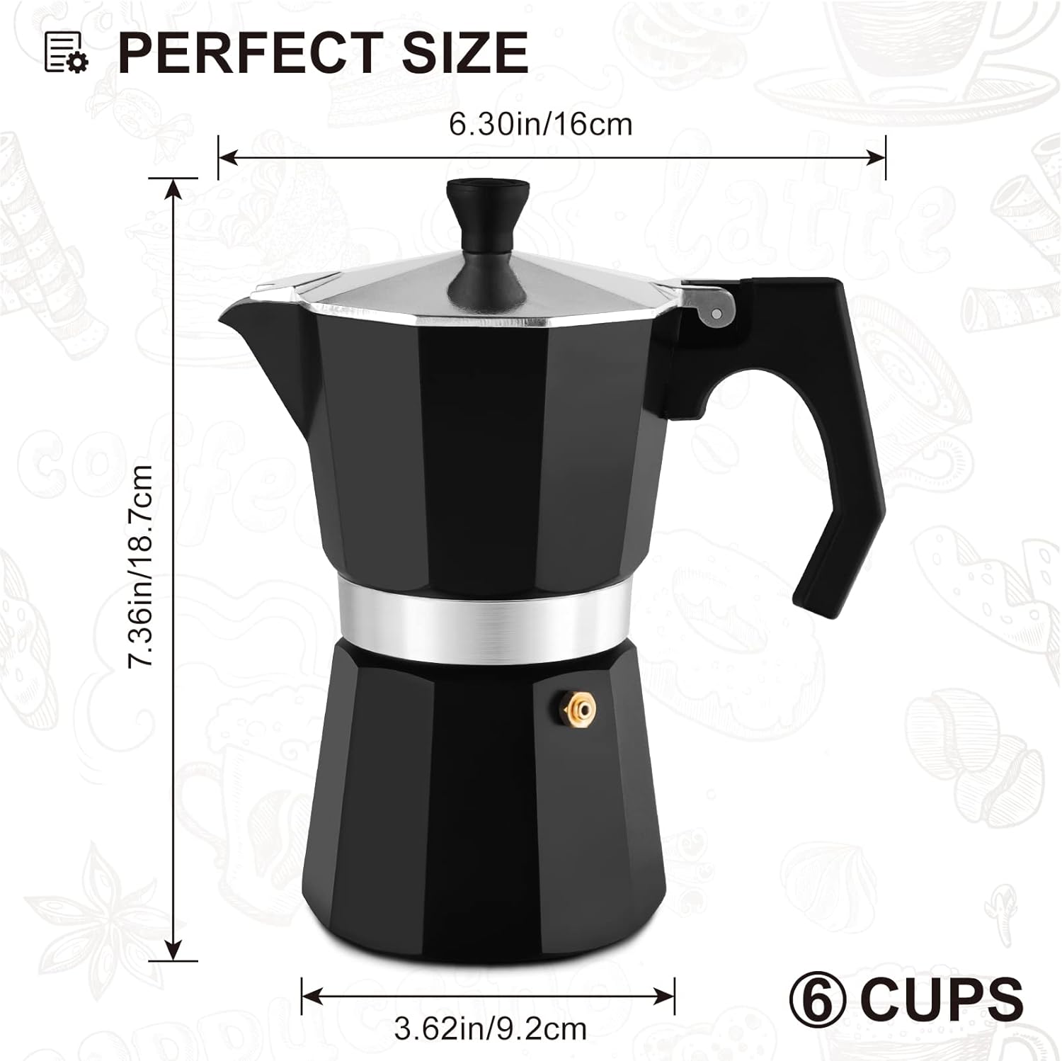 - Moka Espresso Coffee - Available in 3 cups, 6 cups, 9 cup espresso sizes. Stove top percolator coffee pot to make home espresso like a barista.