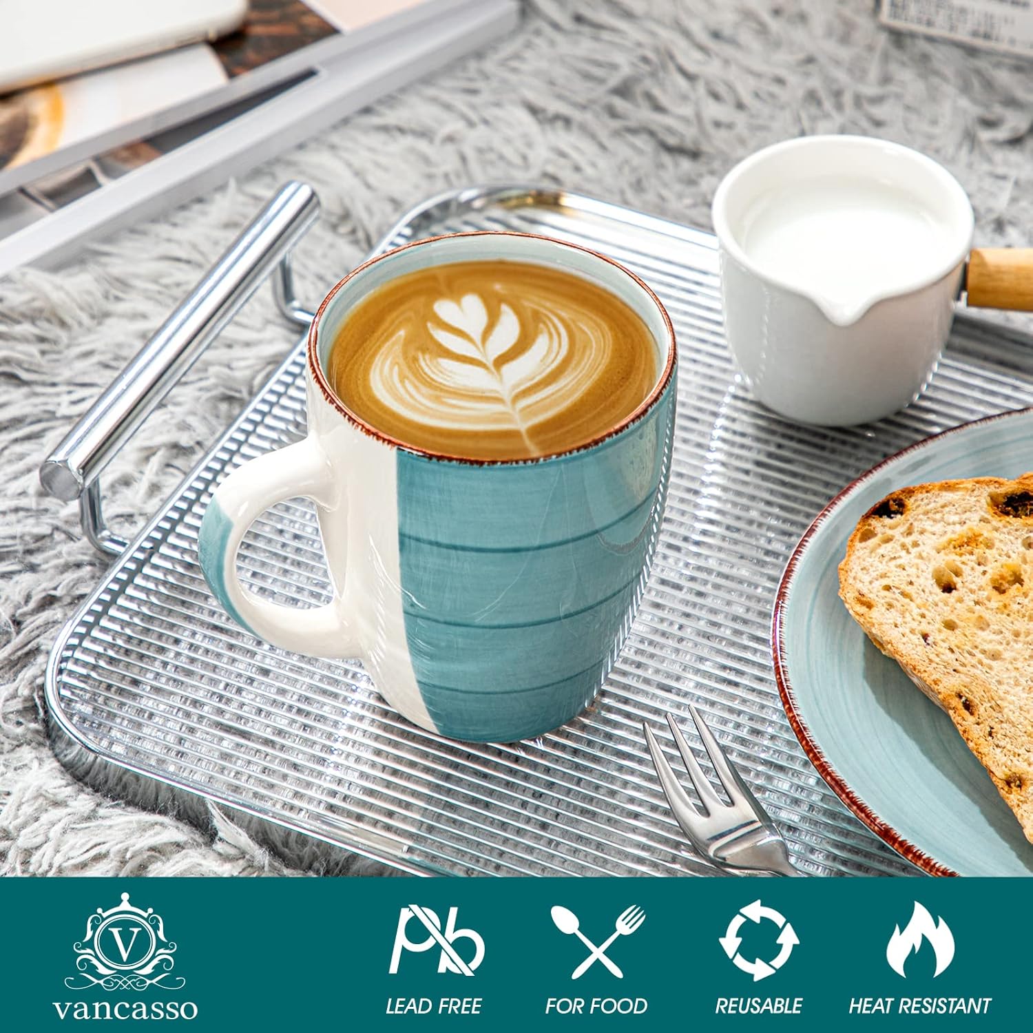 vancasso Bonita 12 Oz Coffee Mugs Set of 6, Ceramic Coffee Cups for Cappuccino, Latte, Tea, Cocoa, Cool Color