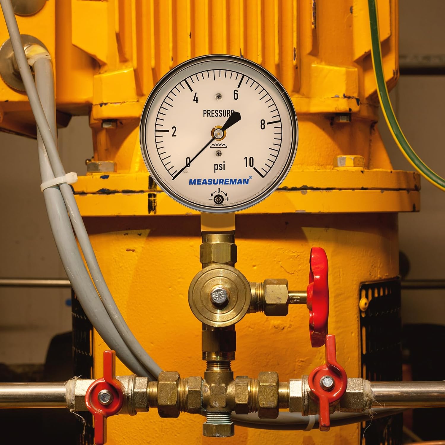 MEASUREMAN Diaphragm Type Capsule Low Pressure Gauge, 2-1/2" Dial, 1/4" NPT Lower Mount, Adjustable, 0-10Psi