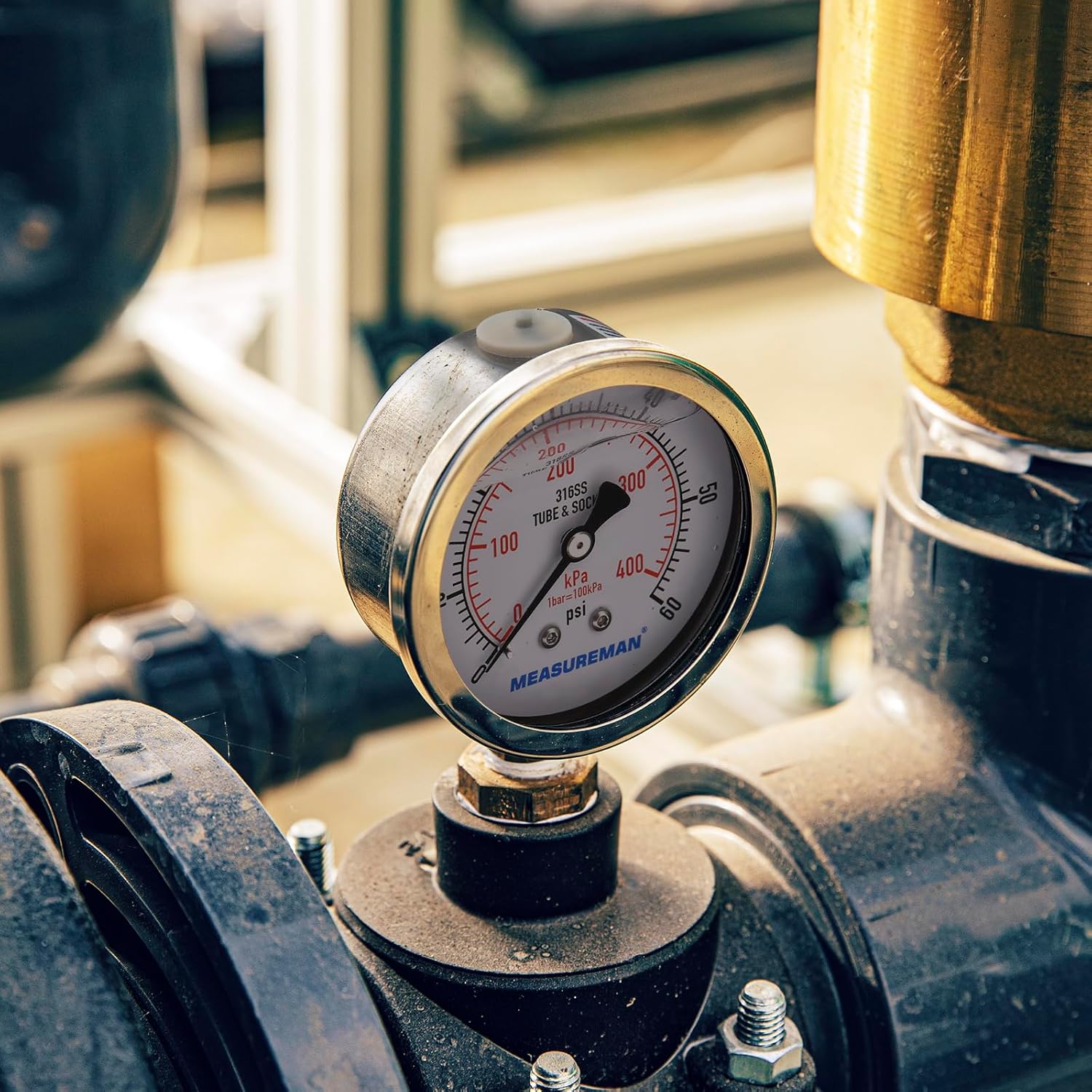 MEASUREMAN Fully Stainless Steel Hydraulic Glycerin Filled Pressure Gauge, 2-1/2" Dial Size, 1/4" NPT Lower Mount, 0-60psi/kpa