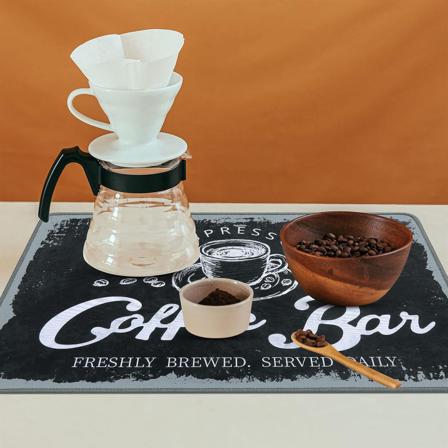 SHACOS Coffee Mat 2-Pack 12x19 Inch Absorbent Non Slip Coffee Maker Mats for Countertop Coffee Bar Accessories Dish Drying Mat Waterproof Heat Resistant, Vintage Black