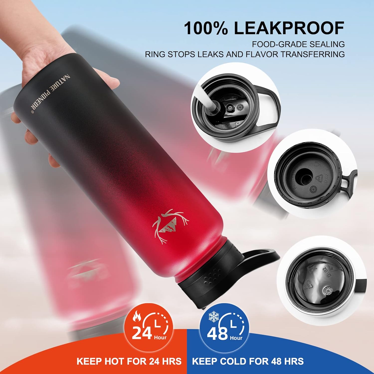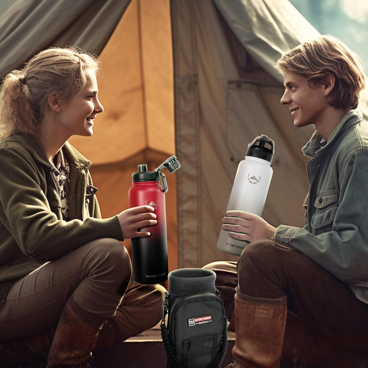 NATURE PIONEOR Insulated Water Bottles with Straw - 40oz Stainless Steel Vacuum Bottle with Holder/Carrier/Sleeve - Reusable 18/8 Food Grade 40 oz Water Jug
