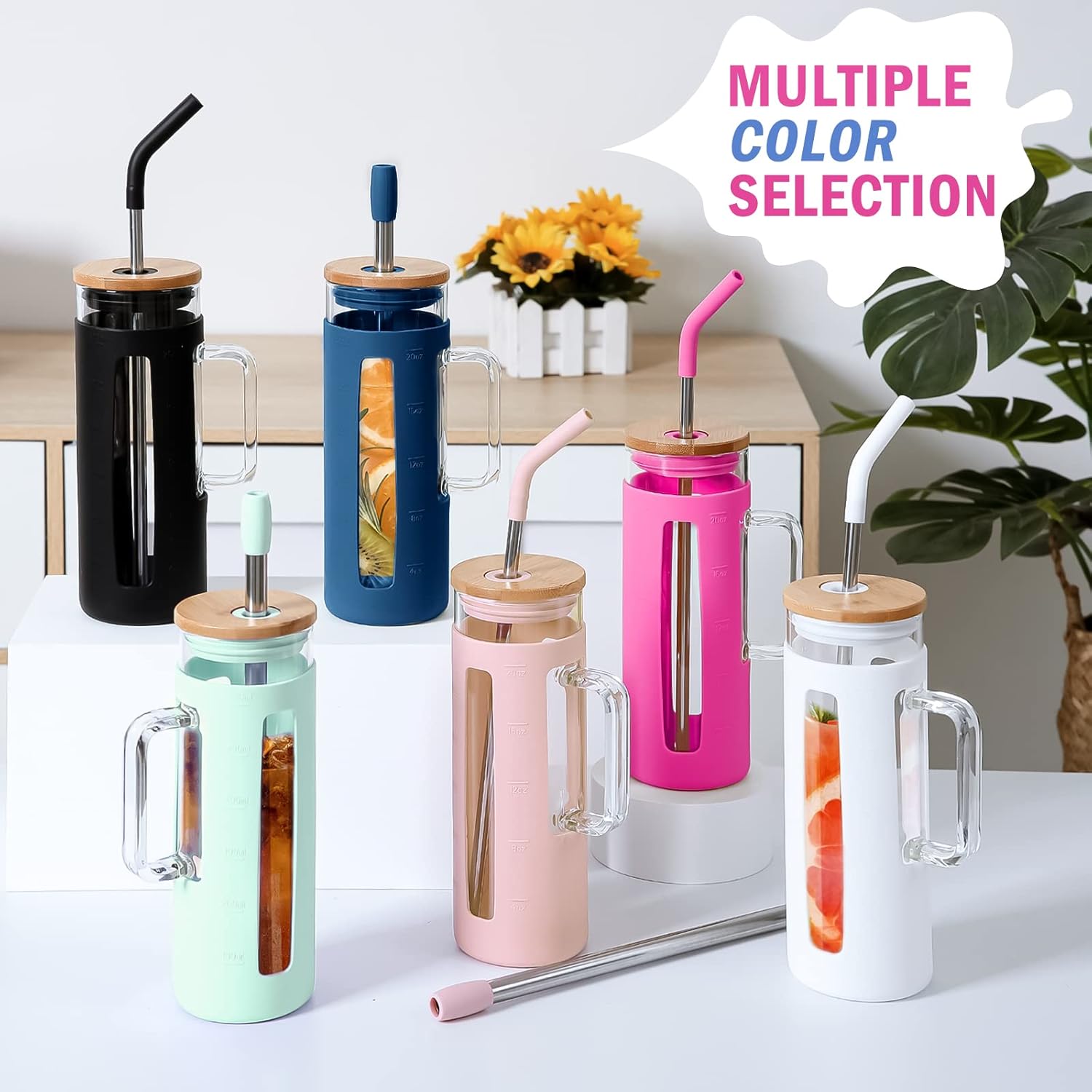 - GLASS TUMBLER WITH BAMBOO LID AND STRAW- Kodrine smoothie cup is made of natural bamboo, which is environmentally friendly and healthy. The inside of the lid is wrapped with food-grade silicone. At the same time, it comes with two stainless steel straws, thick straw for boba tea and thin for drinking water. The straw is comfortable to drink from with the angle and silicone tip.
