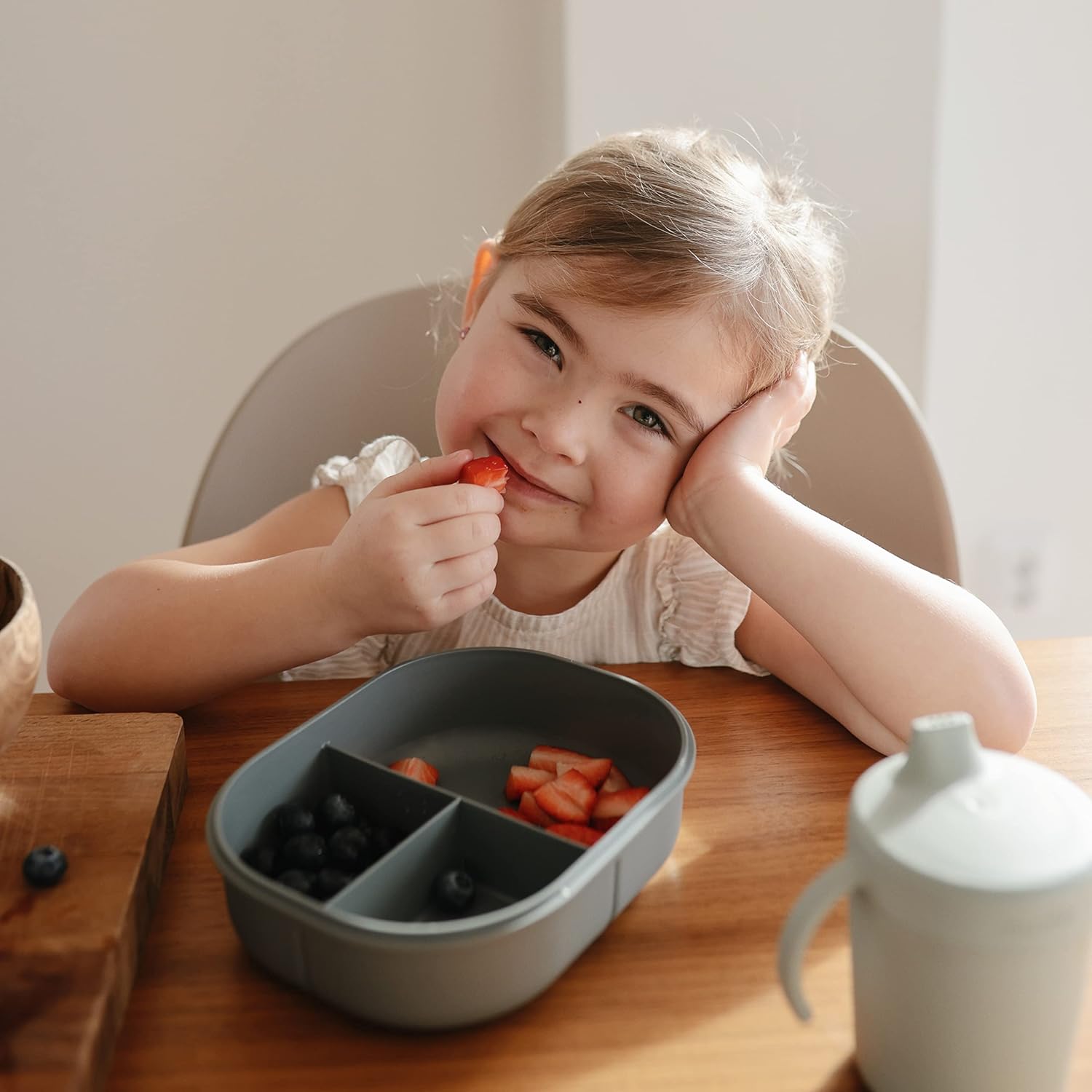 mushie Kids Bento Lunch Box | 3-Compartment & Removable Divider + Fork & Spoon Utensils | Great For Meals, School, Snacks On-the-Go | Dishwasher Safe (Smoke)