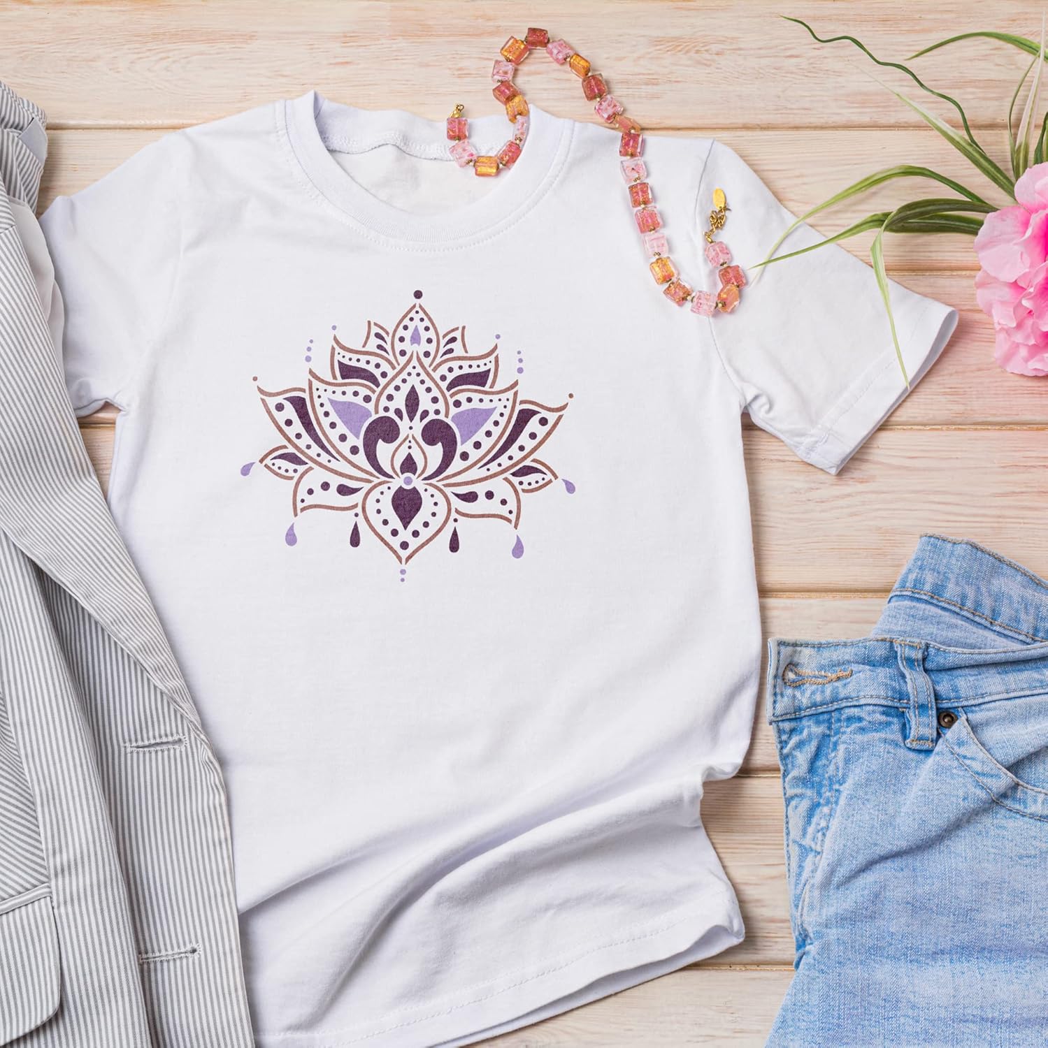 NAKLEO Painting Stencil for Crafts A3 11.8” x 16.5”, Indian Lotus Flower Pattern, Reusable Plastic DIY & Scrapbooking Drawing Template, Decoupage Art Home Decor, Wall Wood Fabric Furniture