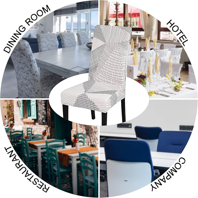 JQinHome White Chair Covers for Dining Room Set of 6, High Stretch Removable Washable Parsons Chair Slipcover for Home Party Hotel Wedding Ceremony (6PCS, Geometric)